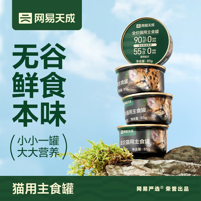 网易严选全价猫用主食罐 高肉含量0谷物猫湿粮低敏护胃全阶段适用猫零食 鱼肉主食罐85g1罐