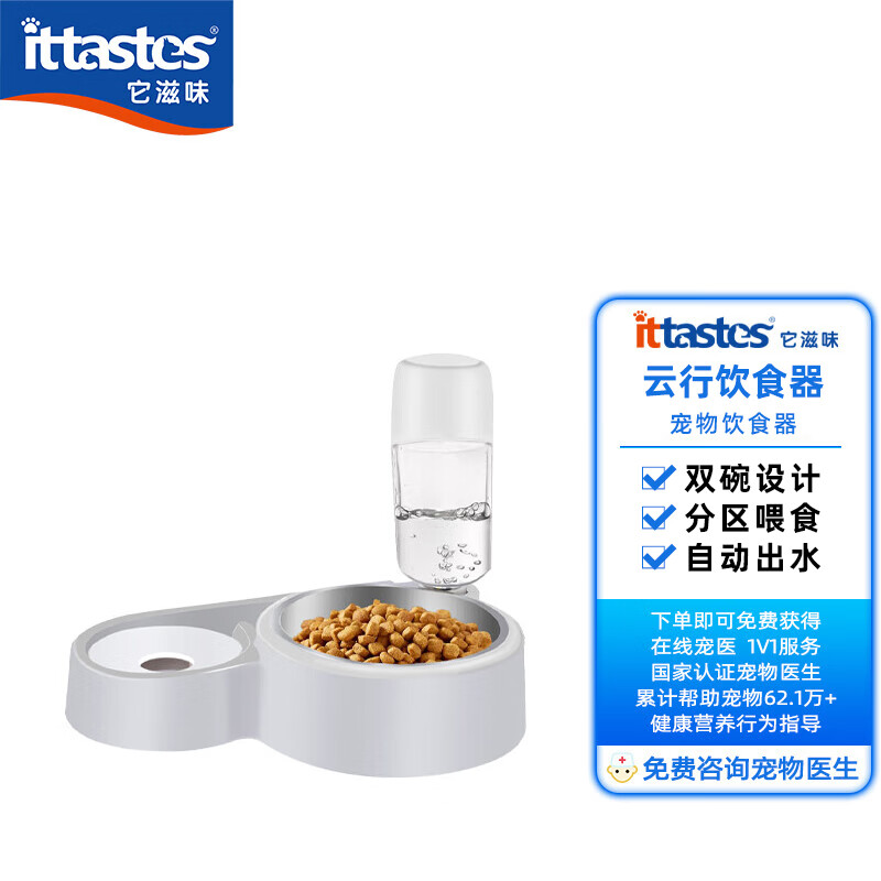 它滋味宠物饮食器云型猫狗饮水喂食喝水碗盆食具水具一体机器不湿嘴毛用品双碗自动续水
