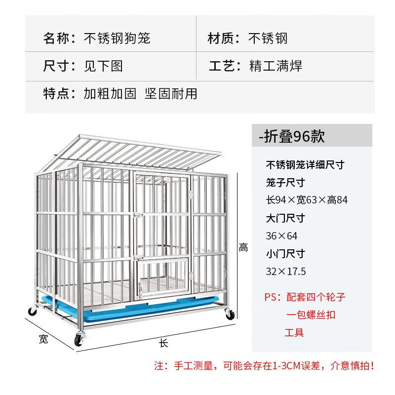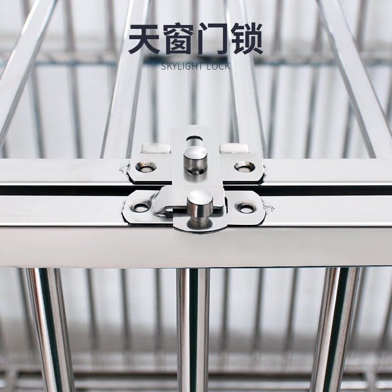 憨憨宠 【氩弧焊满焊】不锈钢狗笼中型小型犬狗笼子猫笼宠物狗狗笼子狗屋金毛拉布拉多柯基法斗用品 【折叠款-免安装】-94*63*84cm带喂食门