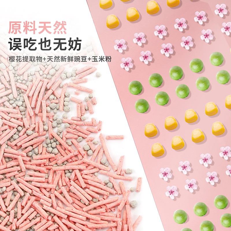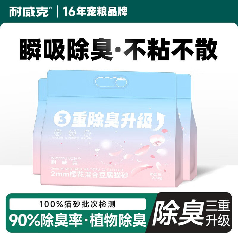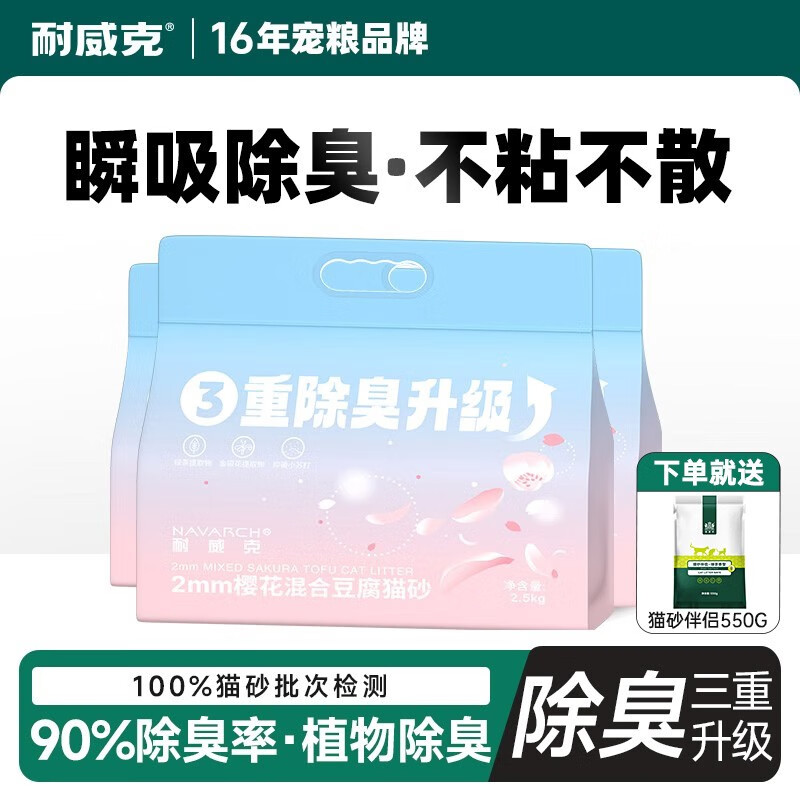 耐威克 樱花豆腐猫砂除臭无尘猫沙大袋混合膨强结团5.6斤 2mm混合樱豆花腐砂2.8kg*3袋