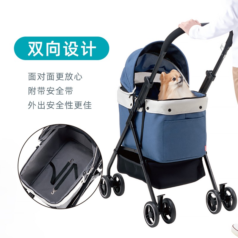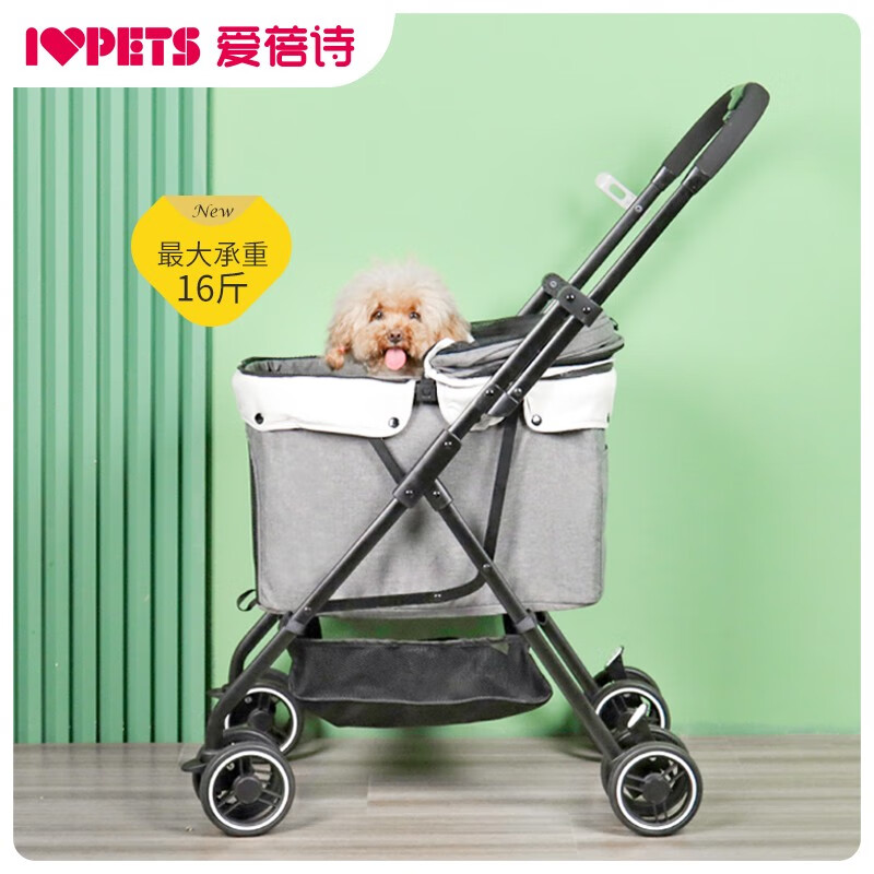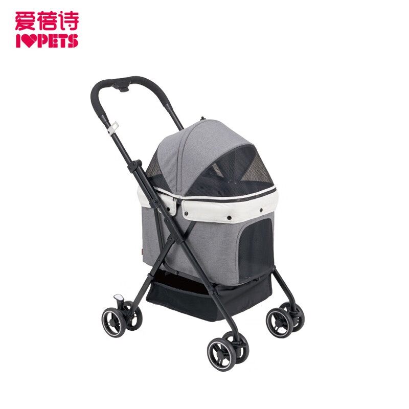 爱蓓诗 IVPETS 宠物推车小型犬狗狗推车猫推车外出双层手推车轻便推车 浅灰色 长47*宽80*高98.5cm