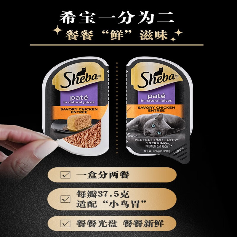希宝(Sheba)一分为二餐盒主食级营养成幼猫罐头猫条猫零食湿粮 【希宝餐盒】 混合口味 12盒共24瓣