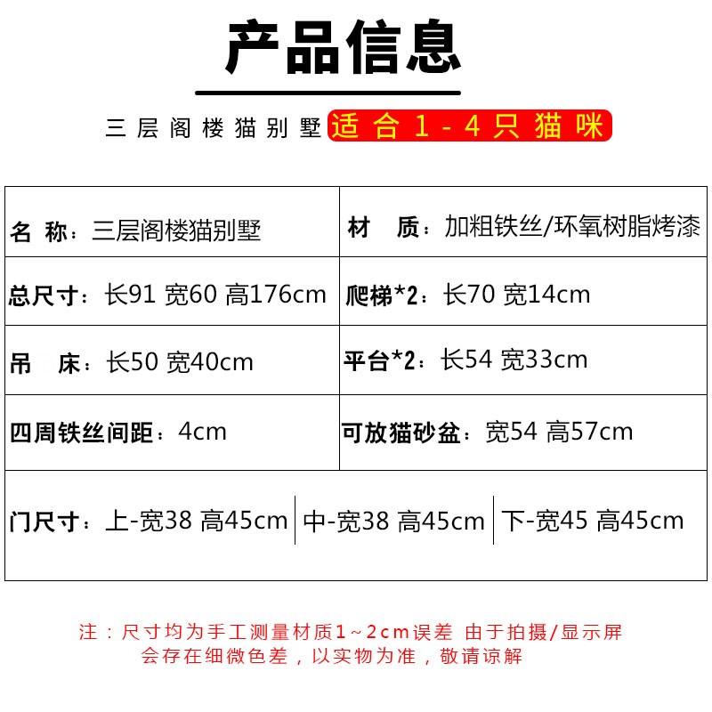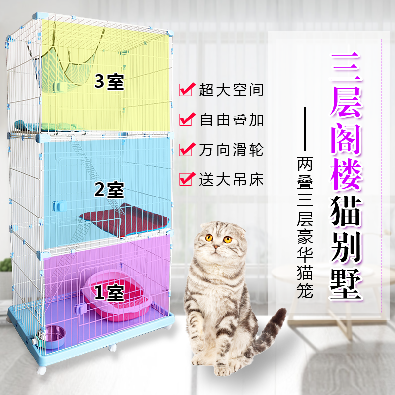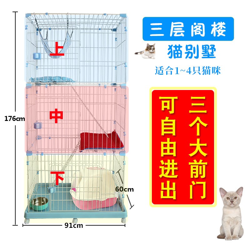 贝尼宠 猫笼子猫别墅 大号便携家用猫笼折叠 特粗加密-长90宽60高176cm