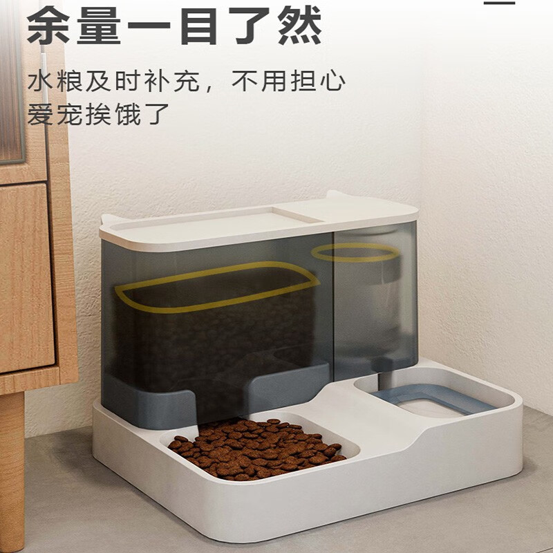 钻诗宠物自动喂食器猫碗狗碗猫储粮桶狗食盆喝水投食器狗狗猫咪饮水机 灰色储水1L储粮2.8L