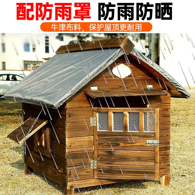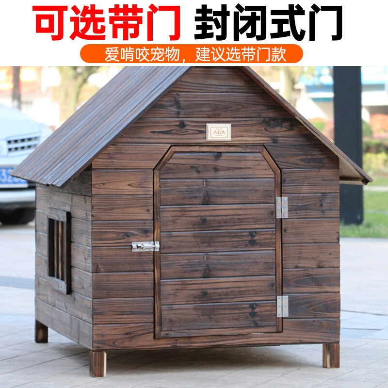藤印象 实木狗屋户外防雨防水四季通用狗笼狗别墅猫窝猫房子宠物窝狗舍 有门双窗 雨罩 门牌 M适合中型犬【69*66*68cm】