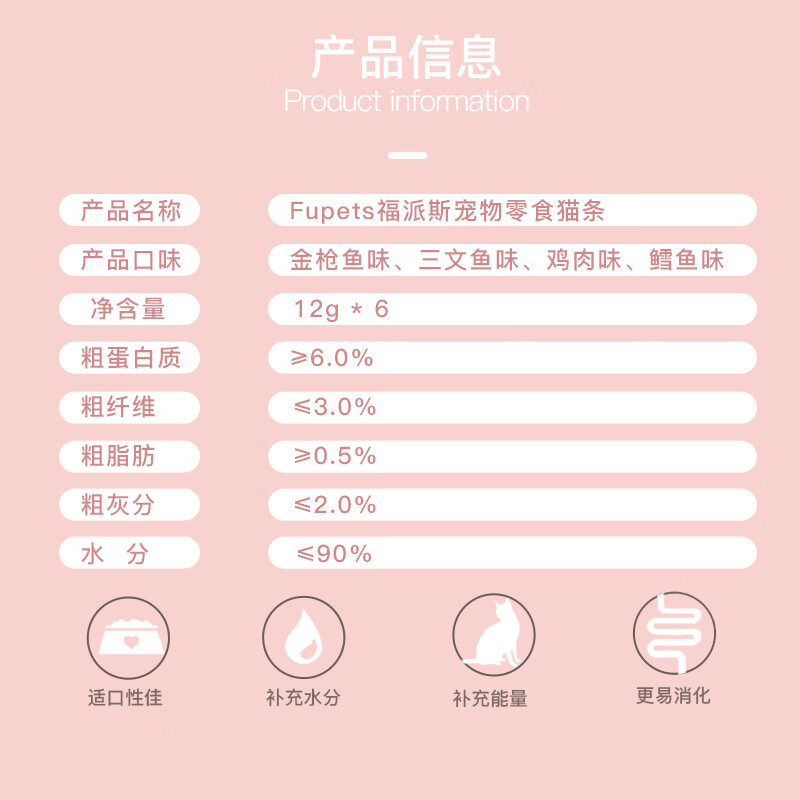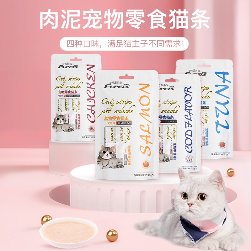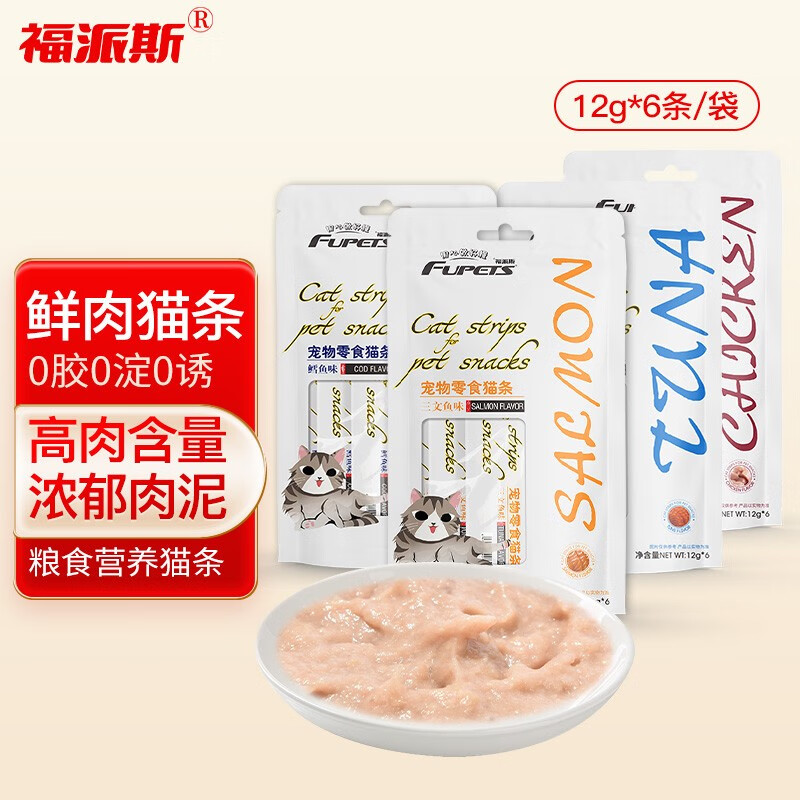 福派斯猫条零食多肉营养猫条鱼肉鸡肉蓝猫美短成猫幼猫通用天然猫条解馋12g*6\\\/盒正品防伪 三文鱼 12g*6条/袋