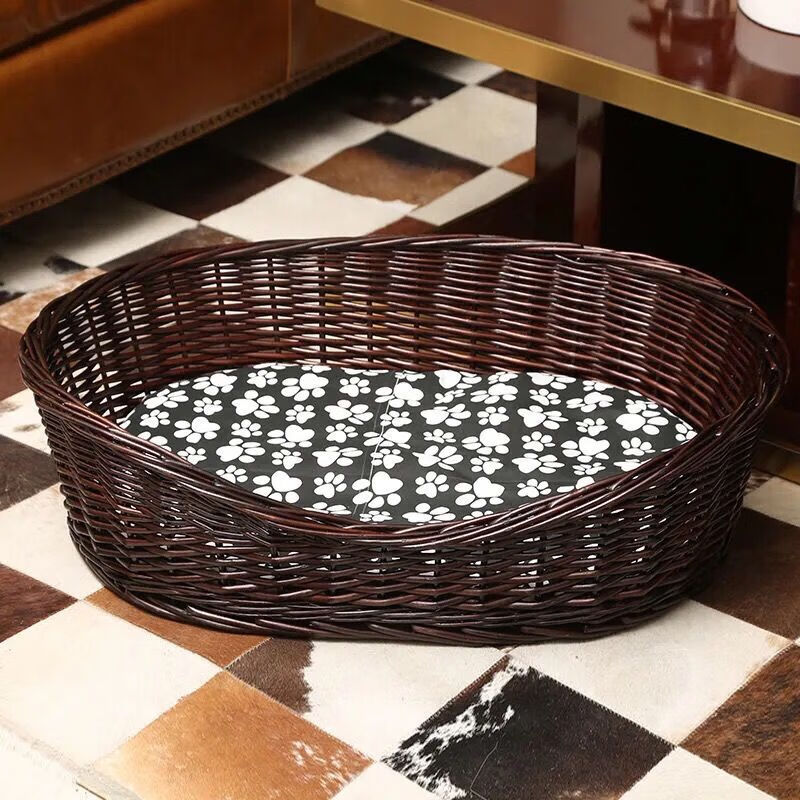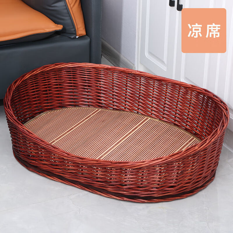 狗窝四季通用藤编狗窝夏季凉窝狗屋狗床大中小型犬窝宠物窝猫咪窝 棕色 凉席 五号【长50*宽38】