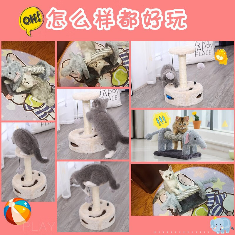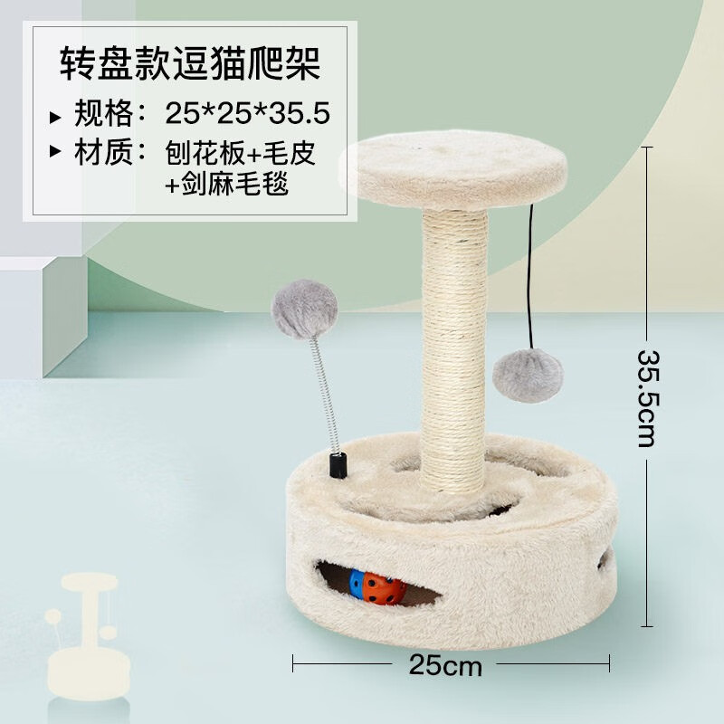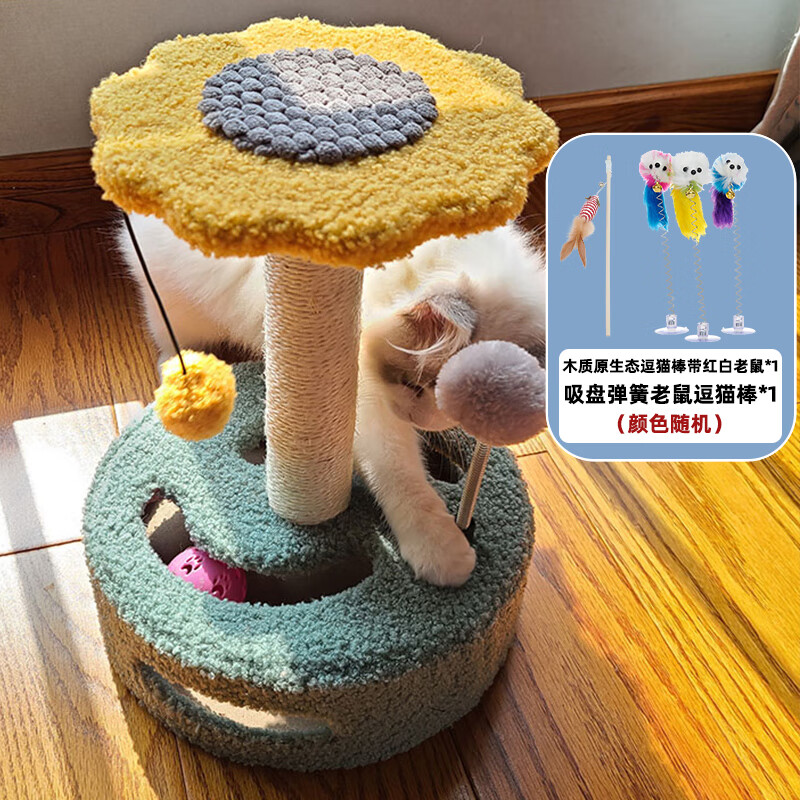 HOOPET 猫爬架猫架子磨爪猫抓柱剑麻猫抓板猫窝带窝一体转盘玩具 向日葵转盘猫爬架 逗猫棒组合