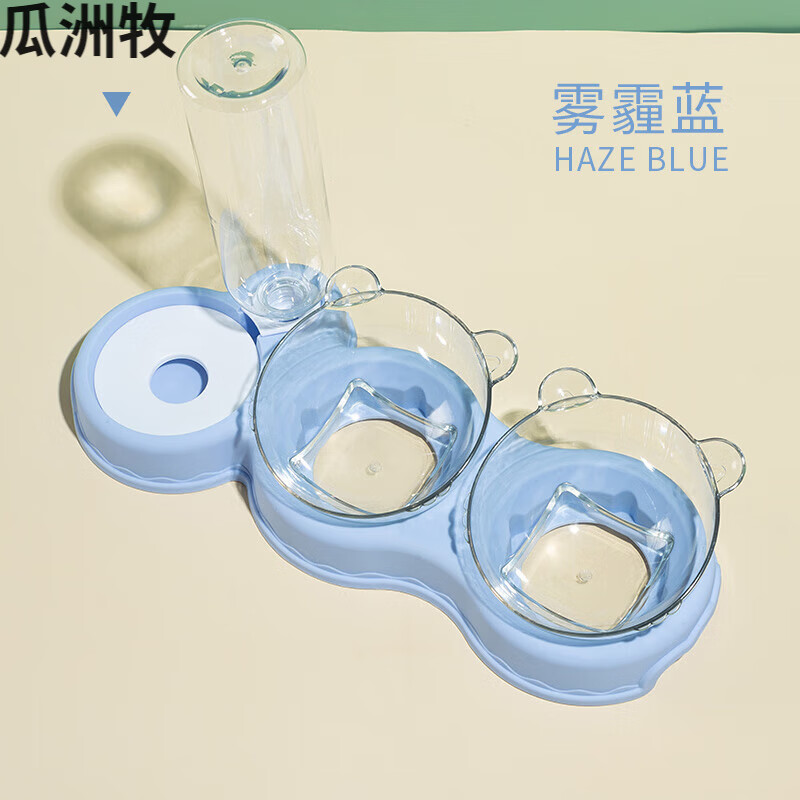 瓜洲牧狗盆狗碗猫碗双碗自动饮水食盆狗狗碗猫咪水碗防打翻饭盆宠物用品 防湿嘴猫耳碗零食 粮食 水浅蓝 猫狗通用/加厚防摔