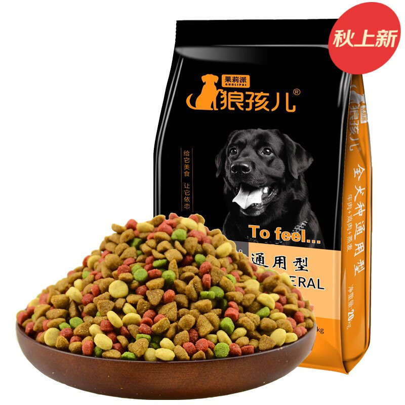 狼孩儿狗粮20斤40斤幼犬狗粮成犬泰迪柯基比熊博美法斗金毛拉布拉多宠物成犬孕犬10斤20kg 20kg果蔬四拼粮(40斤装)