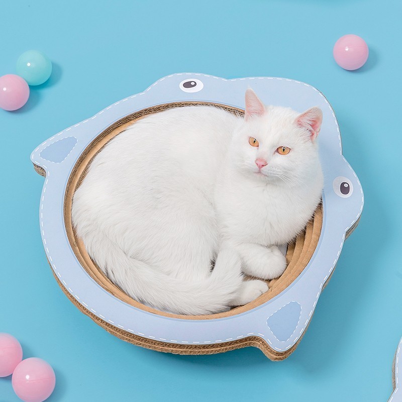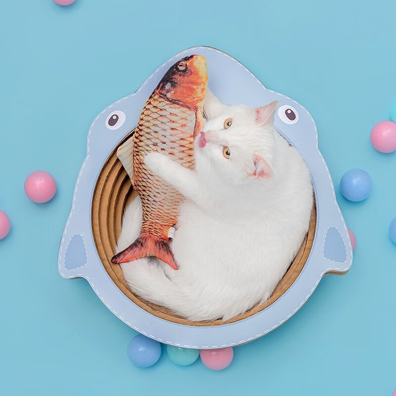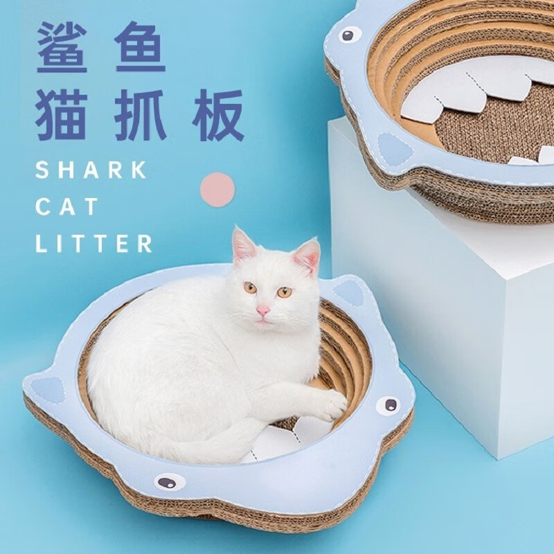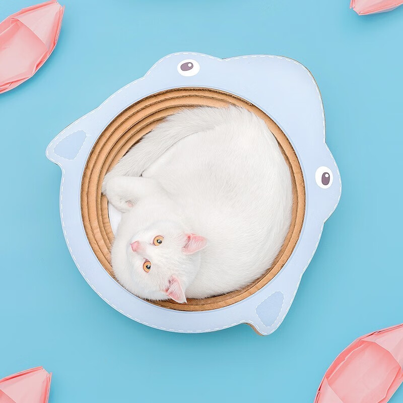 守爱猫抓板碗型猫窝猫爪碗磨爪器碗形耐磨瓦楞纸睡觉纸窝防猫爪子挠抓盆玩具猫咪用品 鲨鱼圆窝大号(宽51cm)15斤内宠物适用