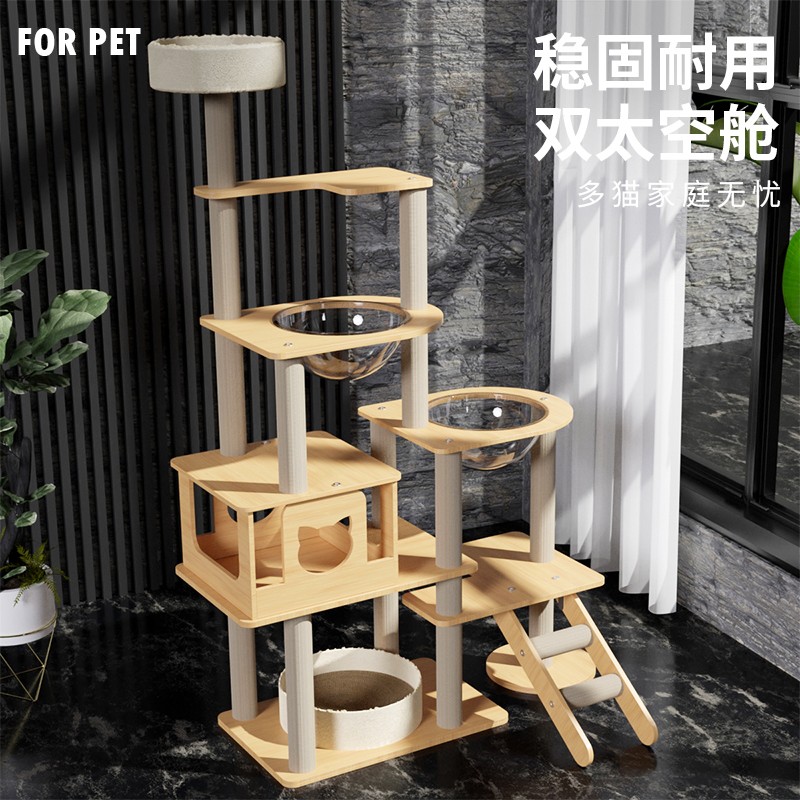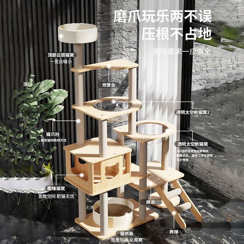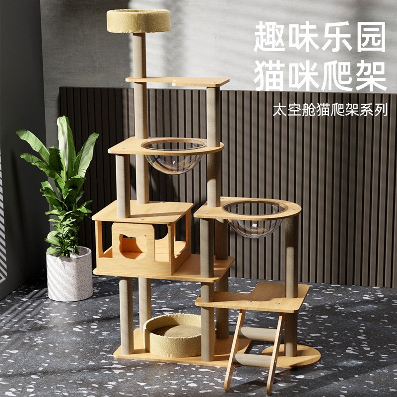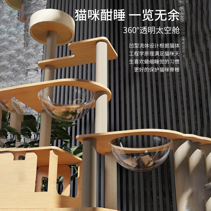 猫爬架 太空舱实木猫爬架大型豪华猫玩具猫架子剑麻宠物猫窝猫抓 M015(促销价)此款看图二