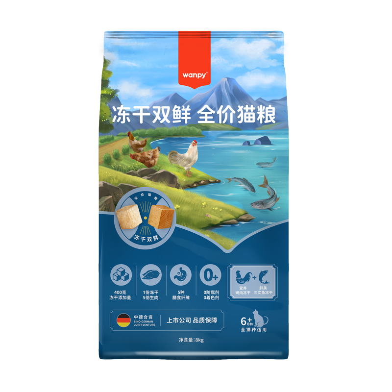 顽皮wanpy猫粮双鲜全价粮两种冻干均衡膳食 qd添加冻干鸡肉三文鱼8kg