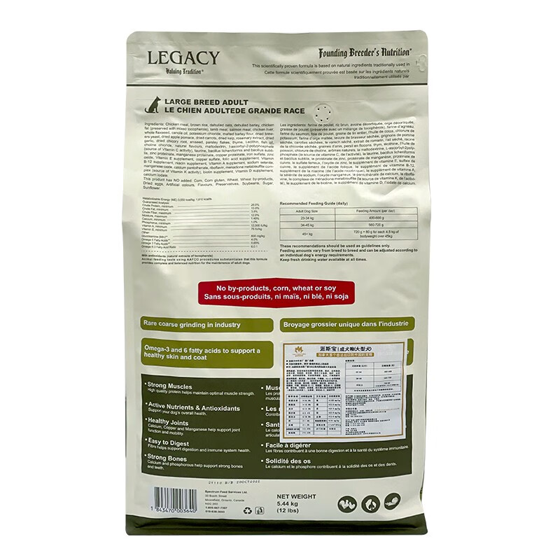 派斯宝Legacy 进口宠物狗粮 萨摩耶哈士奇金毛阿拉斯加拉布拉多 大型成犬犬粮5.44kg
