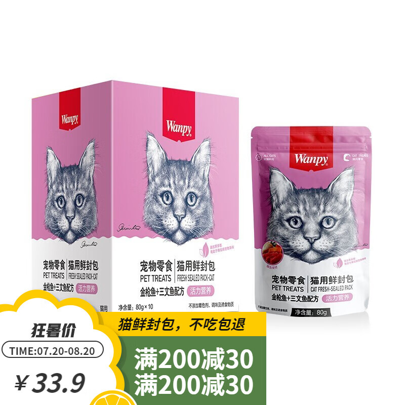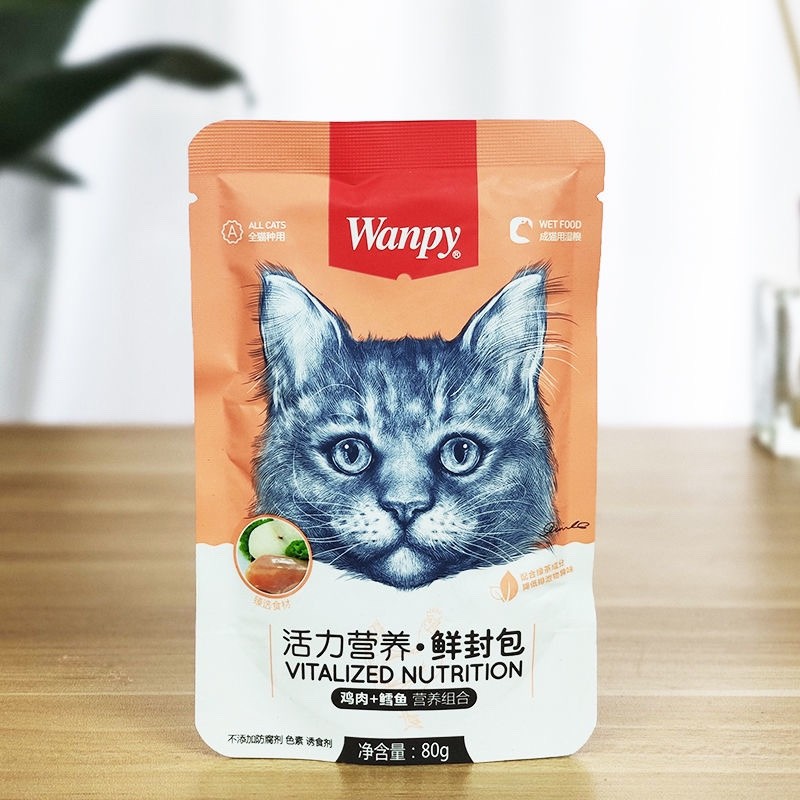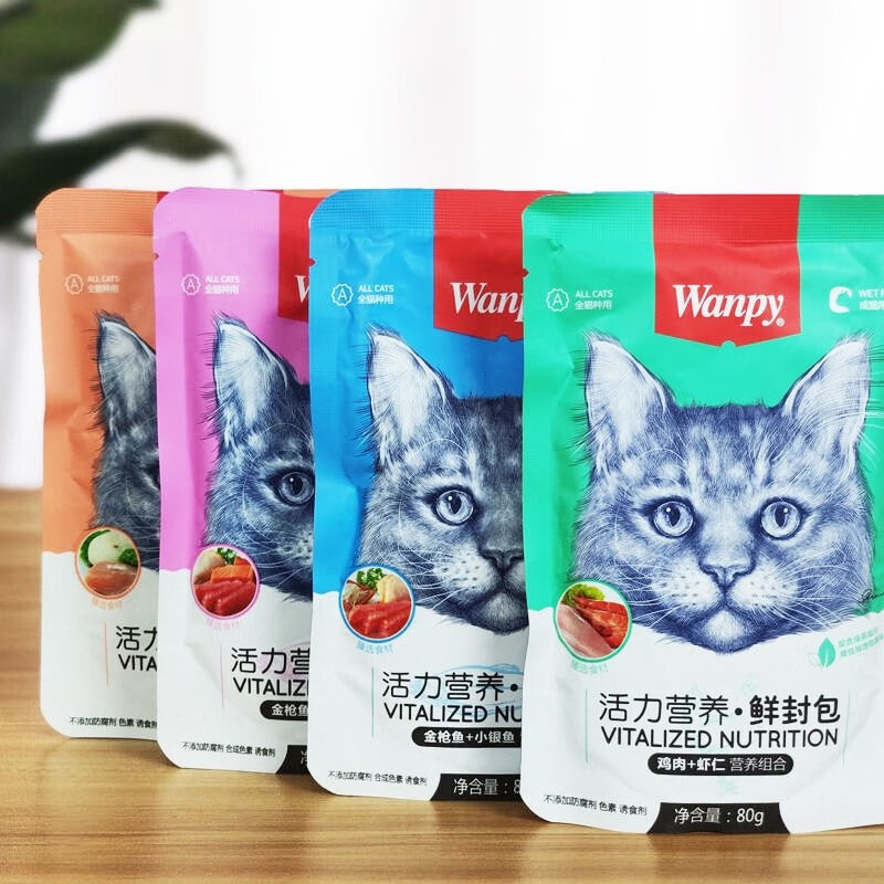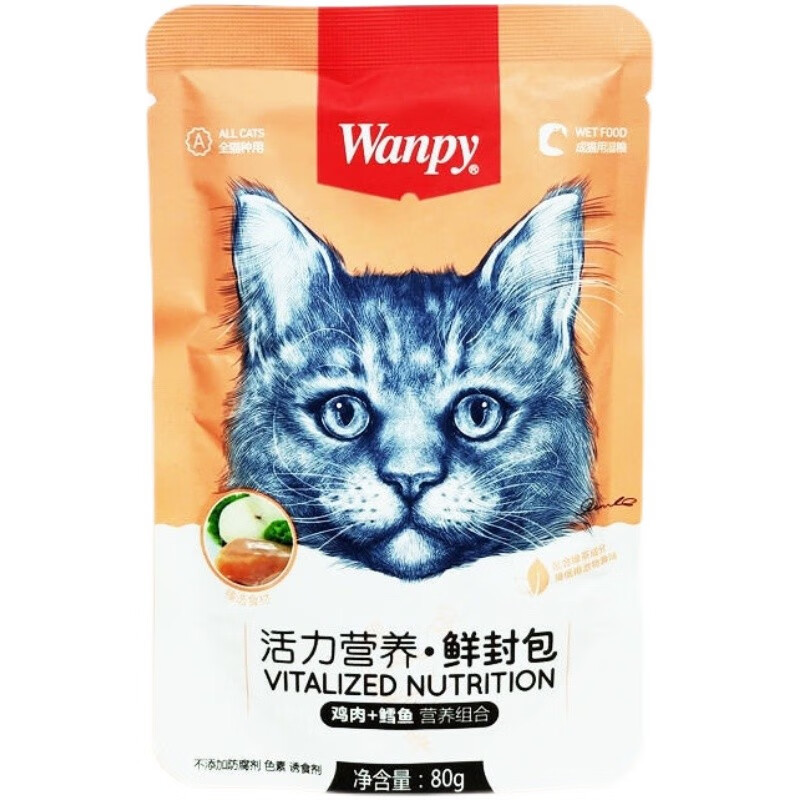 【京优选】顽皮妙鲜包猫零食鲜封包800g(80g*10包) 猫条猫湿粮增肥猫罐头成猫咪宠物零食整盒装 三文鱼10包盒装