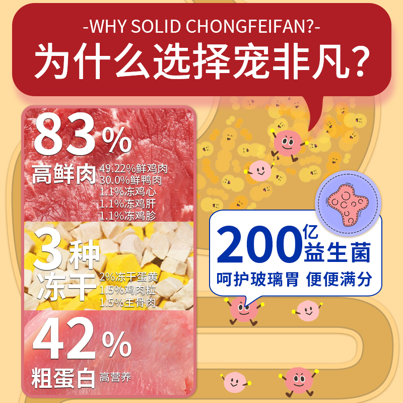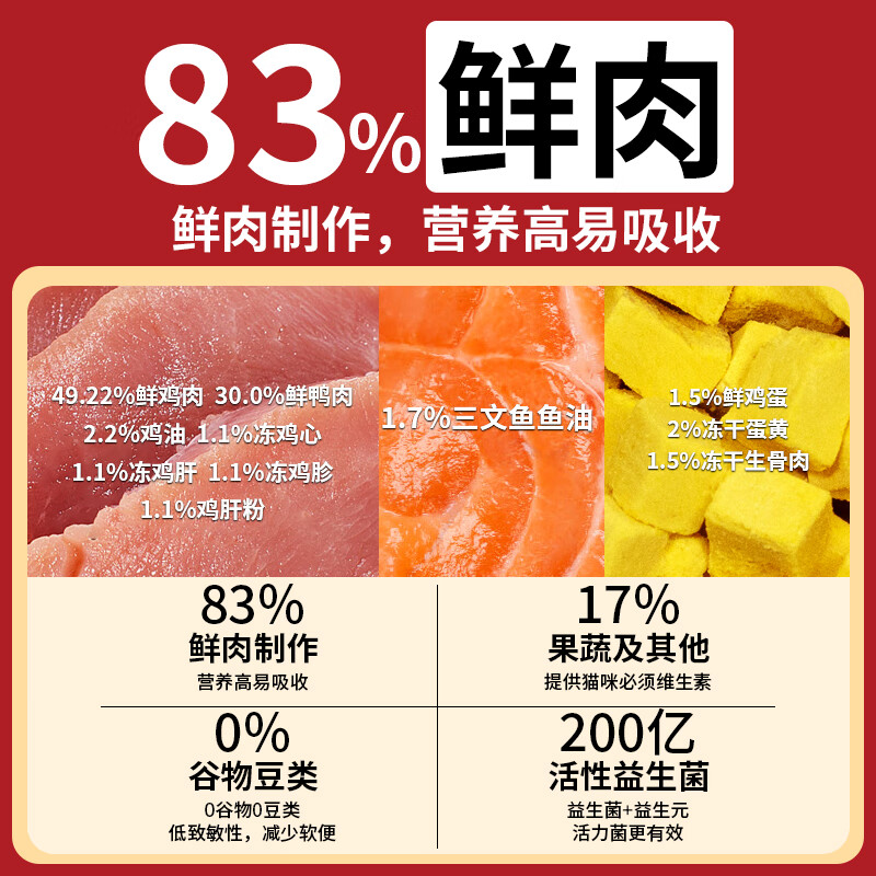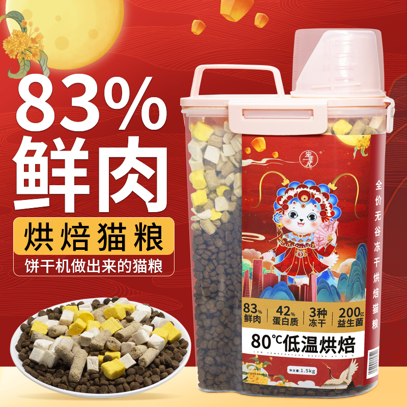 宠非凡 83%鲜肉 烘焙饼干猫粮1.5kg添加200亿益生菌 幼猫成猫全期无谷鲜肉烘焙猫粮冻干