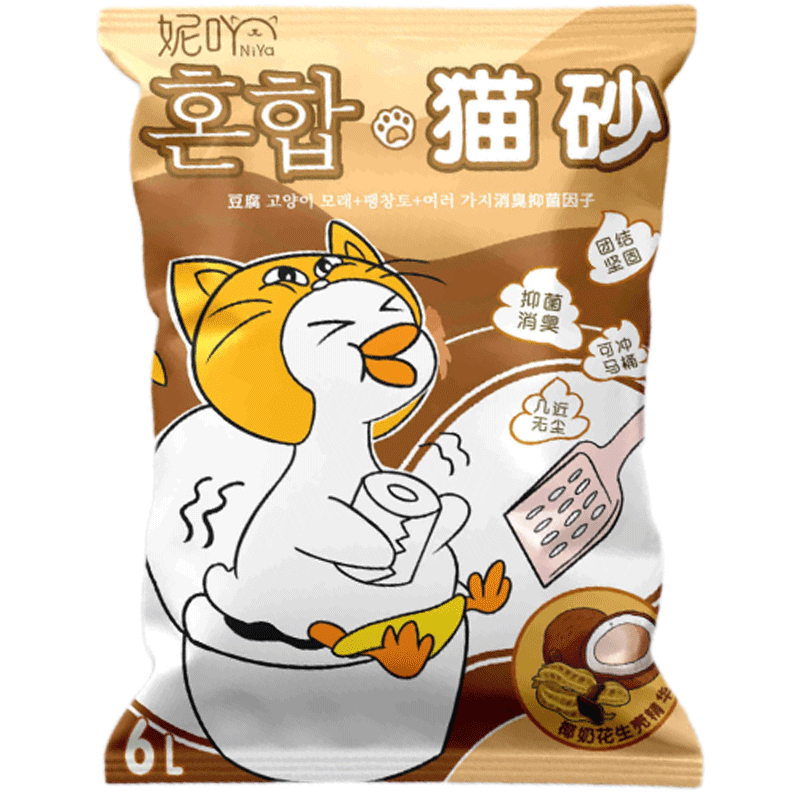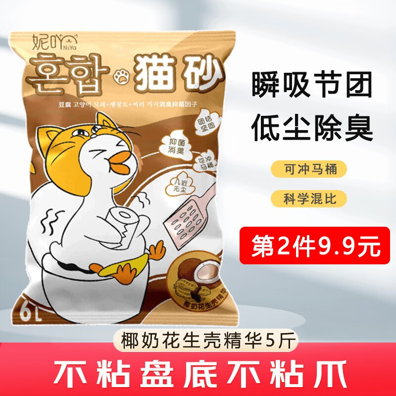 妮吖豆腐猫砂混合钠基膨润土除臭低尘可冲马桶小颗粒猫咪用品 椰奶花生壳精华|1袋2.5kg