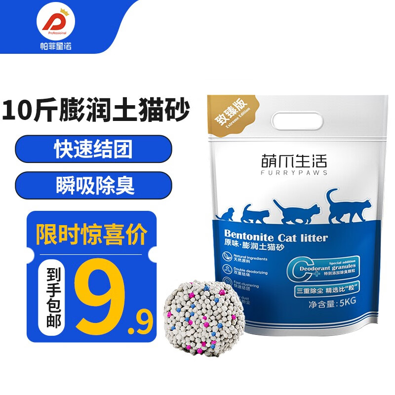 小佩 萌爪生活混合猫砂20斤装豆腐猫砂活性炭抗菌除臭无尘猫沙10公斤可冲马桶 土砂至臻版5kg-原味