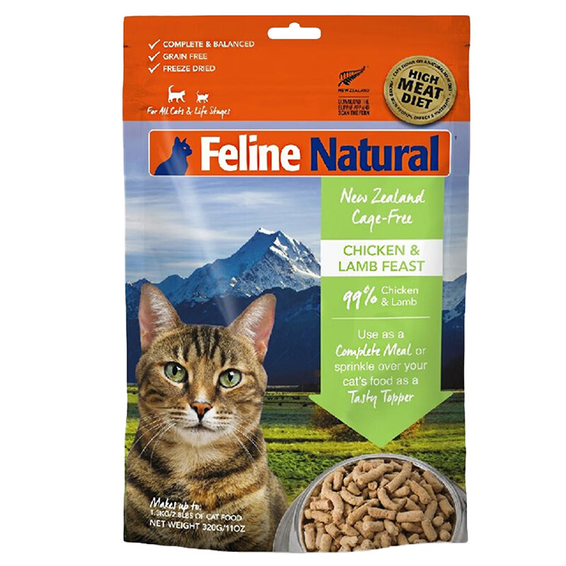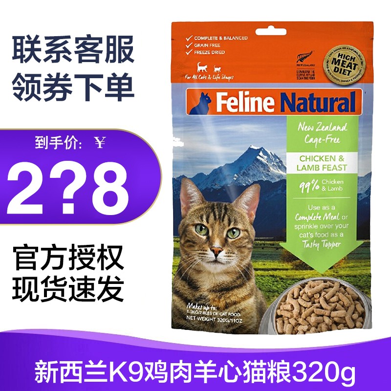 k9冻干猫粮Feline Natural宠物主粮新西兰进口成猫幼猫无谷物脱水鲜肉 鸡肉羊心320g