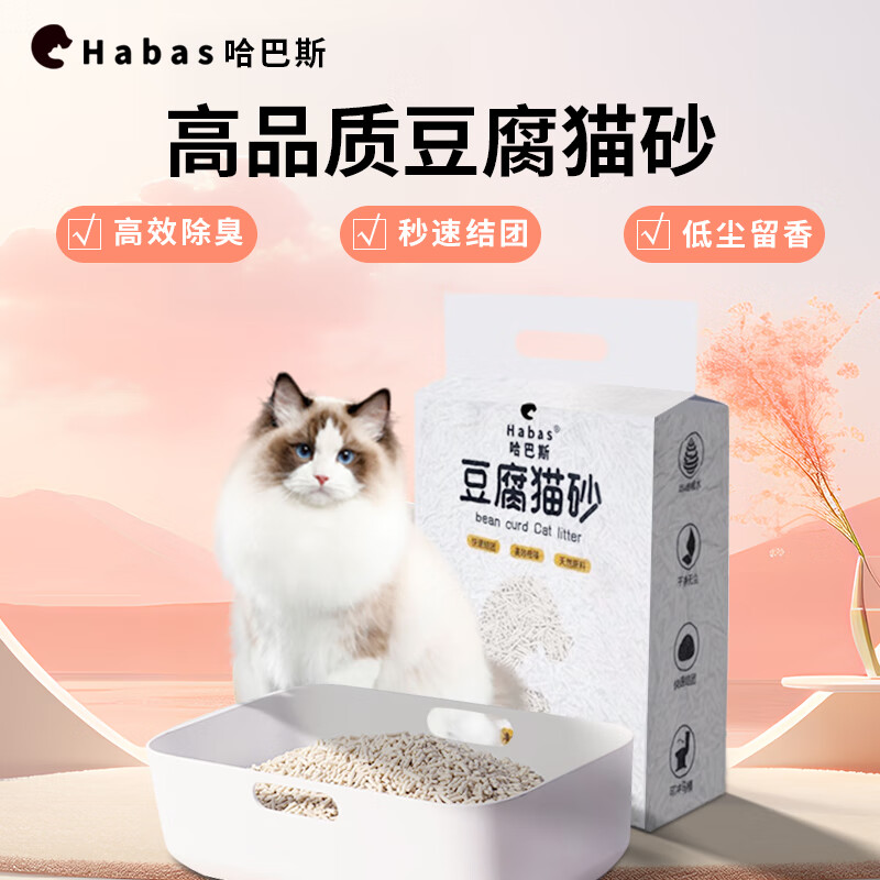 哈巴斯(Habas) 豆腐猫砂10kg公斤混合猫砂 6L大袋装强除臭无尘结团吸水可冲厕所 原味豆腐猫砂- 6L 1袋 (约2.5kg)