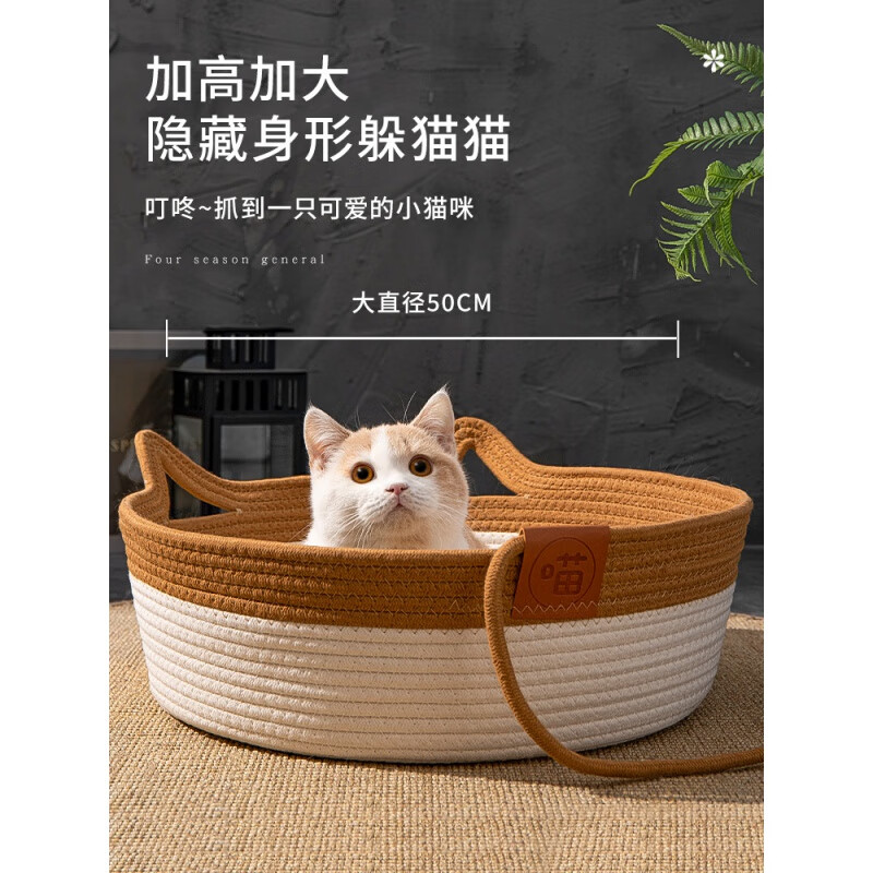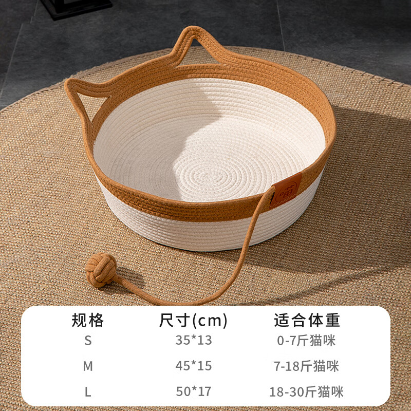 CLCEY粗麻藤编猫窝四季通用夏季猫床编织猫咪睡觉用垫子夏天狗窝宠物 升粗麻藤席窝 升自嗨球( 窝球一 M-中型(径45cm 高15cm 适合7-18