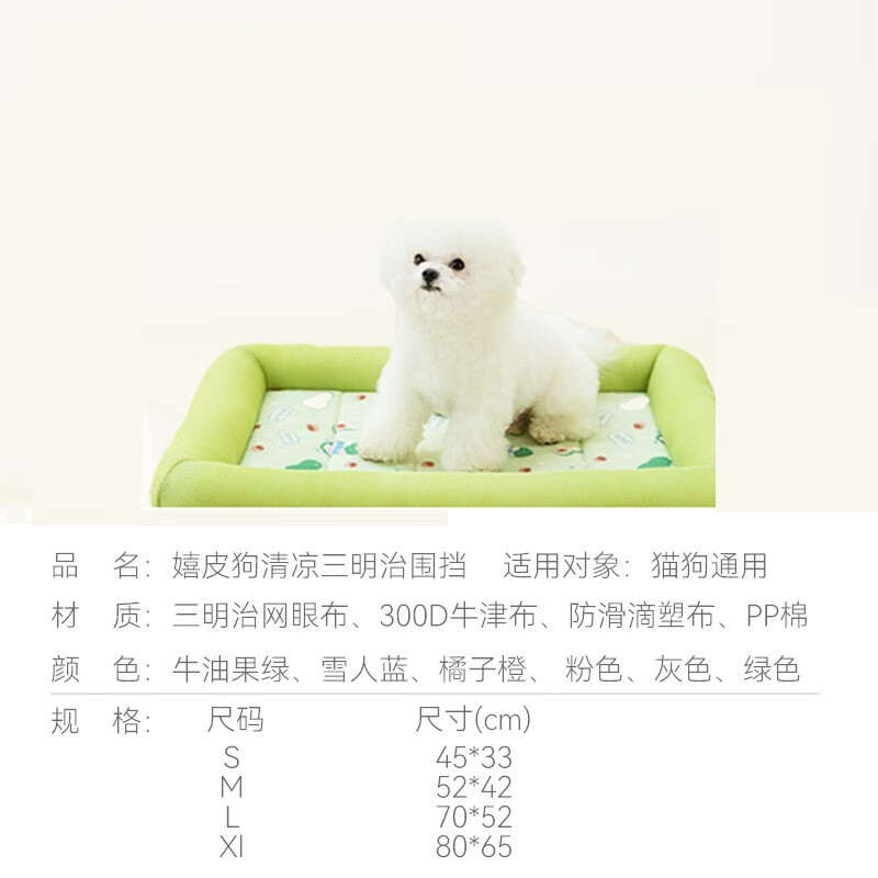 嬉皮狗(hipidog)狗窝四季通用夏天凉窝小型犬泰迪狗床耐脏可水洗夏季狗狗垫子用品 牛油果绿S码(建议5斤内)