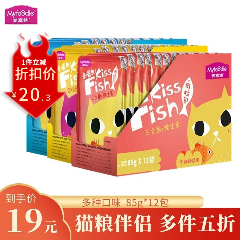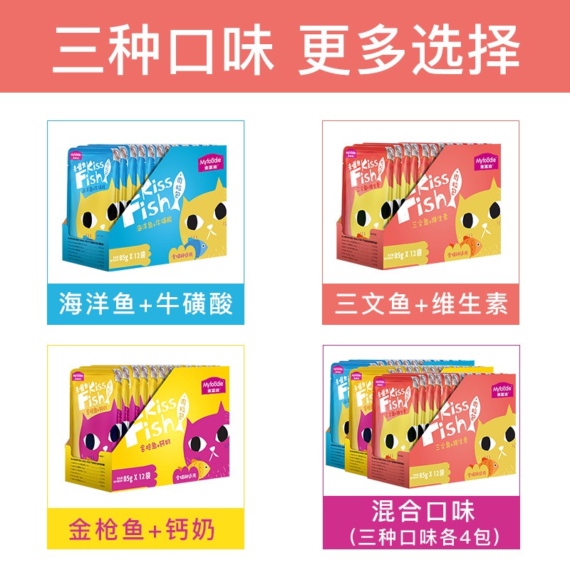 麦富迪肉粒包猫罐头零食妙鲜猫湿粮猫咪恋肉粒包营养美味营养成猫猫罐头 亲嘴鱼三文鱼85g*12
