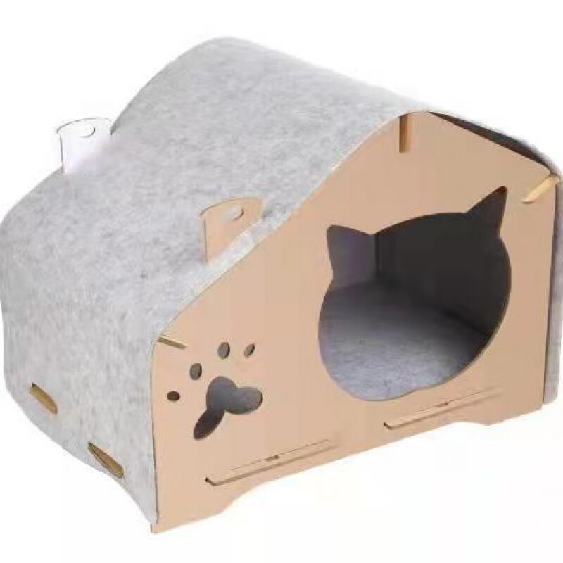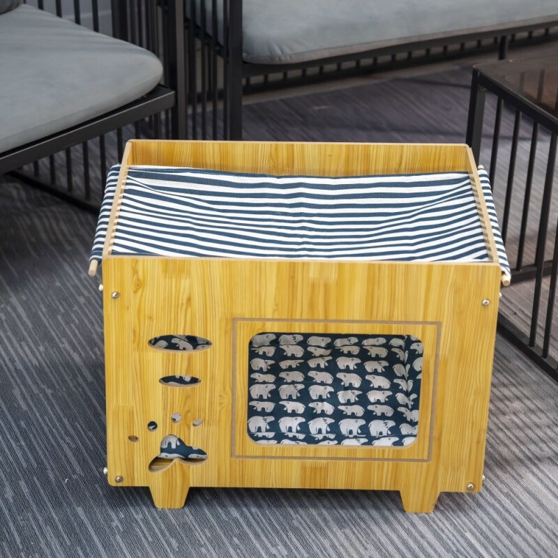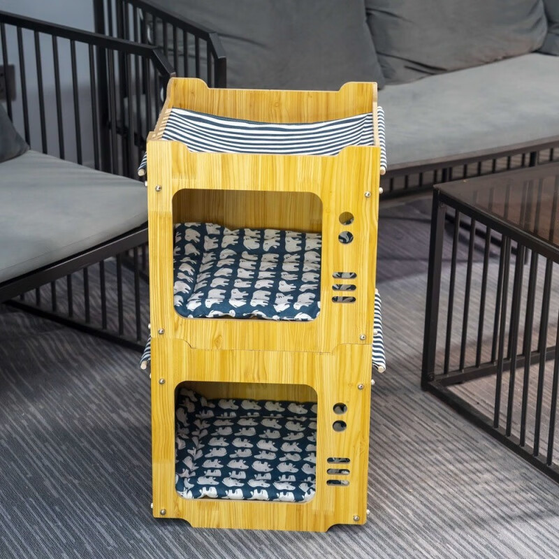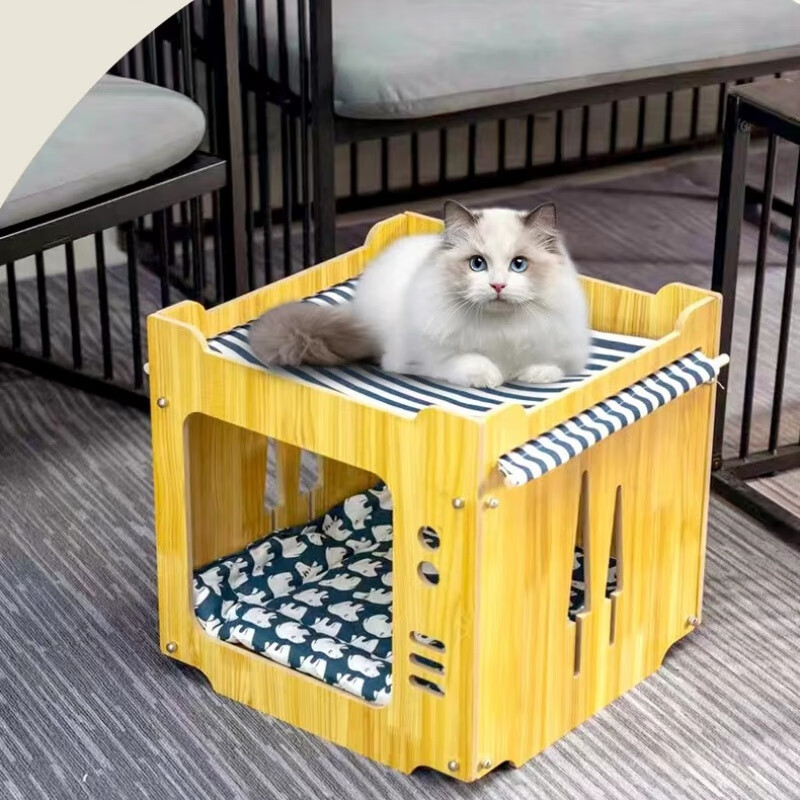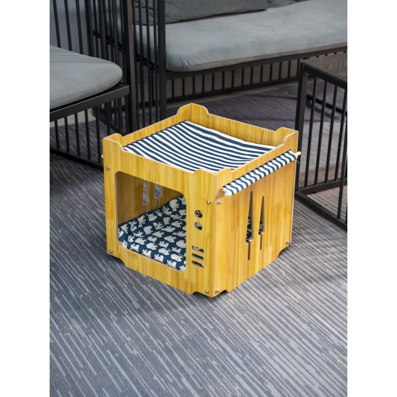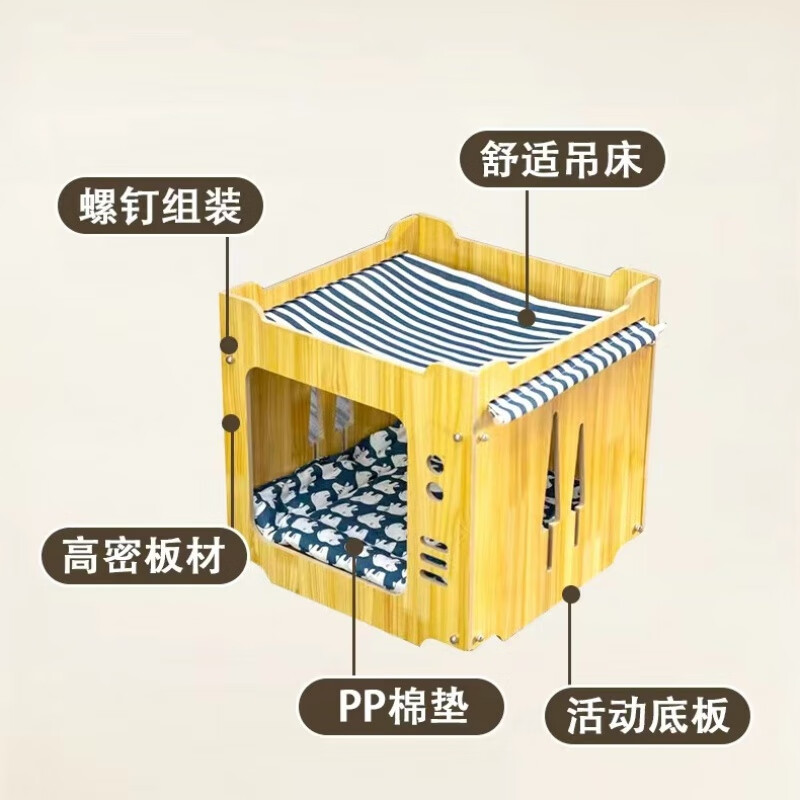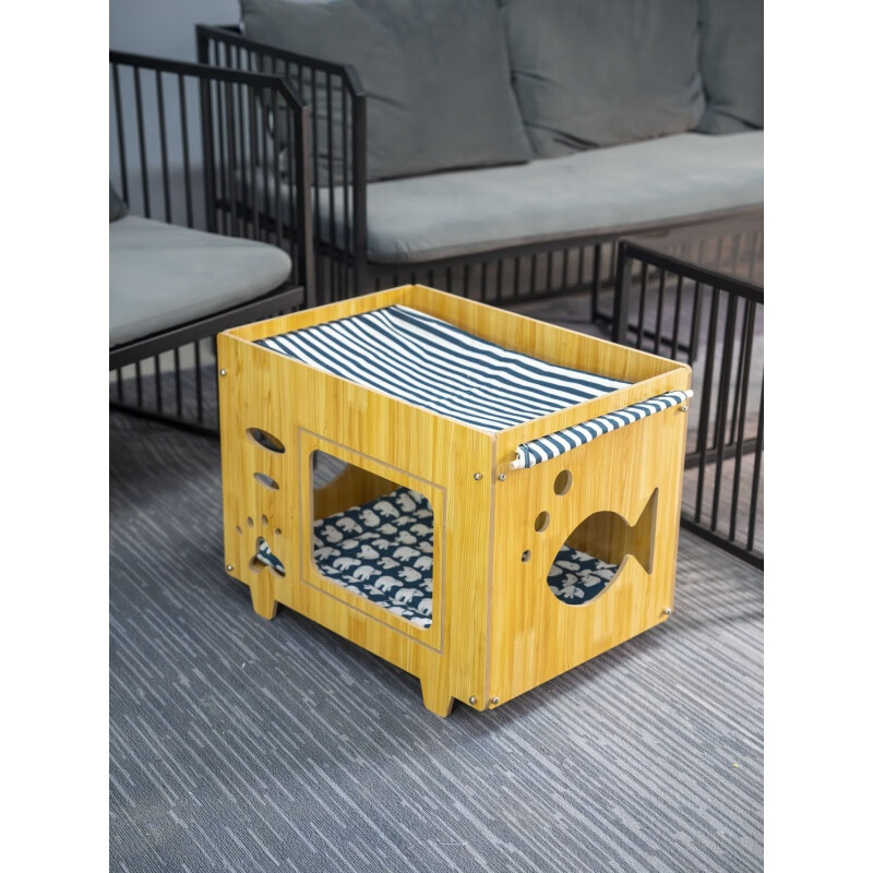 木制积木组合猫窝含吊床猫爬架窝四季通用猫窝多层猫狗窝 猫帐篷小别墅【54*44*40】 棉垫 吊床 猫薄荷