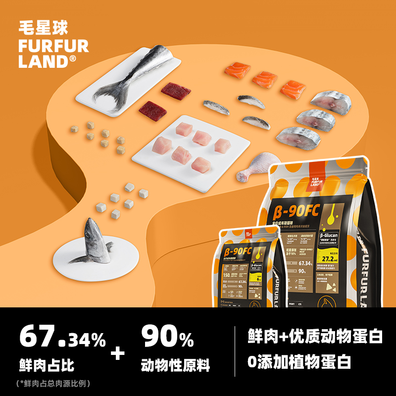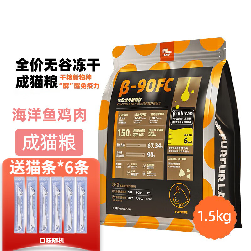 毛星球(FurFur Land)全价无谷猫粮鸡肉三文鱼海洋鱼黑酵母冻干成幼猫粮添加冻干粮 成猫粮1.5kg