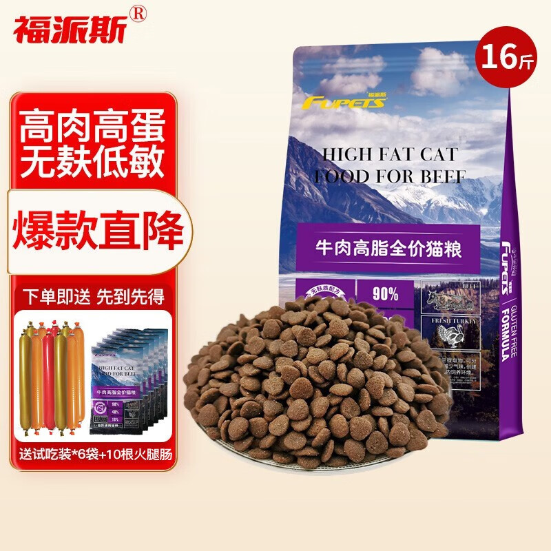 福派斯无麸质牛肉高脂全价猫粮牛肉 火鸡全阶成猫幼猫哺育怀孕天然通用 8kg