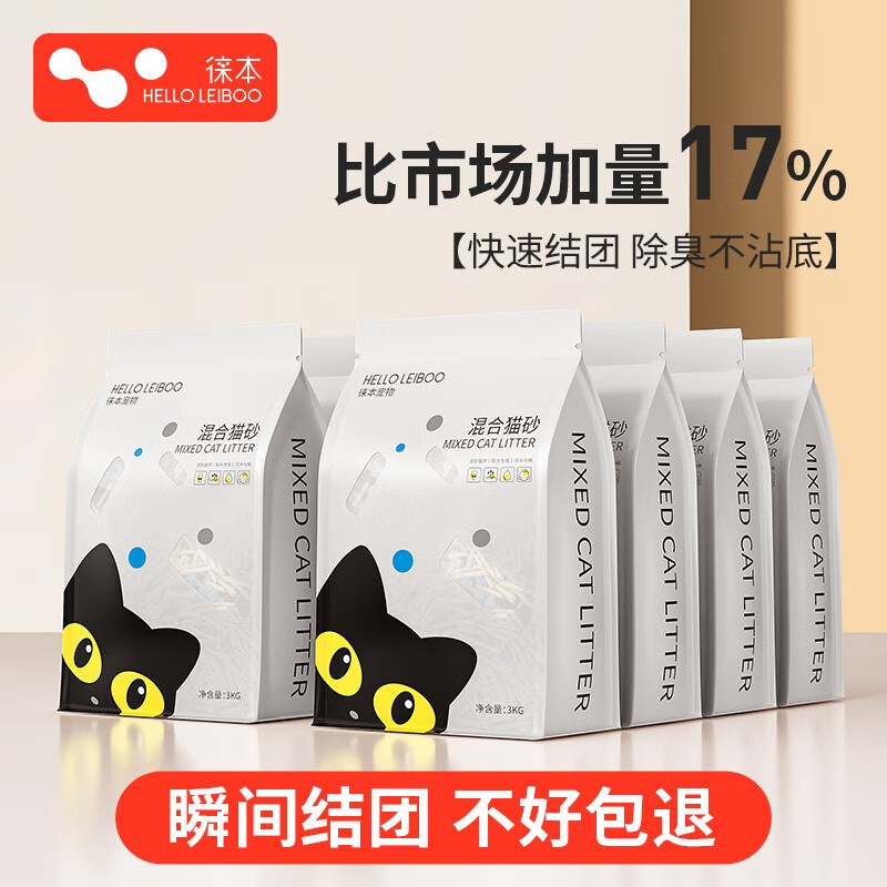 HELLOLEIBOO徕本 豆腐猫砂除臭无尘膨润土混合沙猫咪用品活性炭大袋3KG 原味8包48斤【1.5mm 吸水结团】