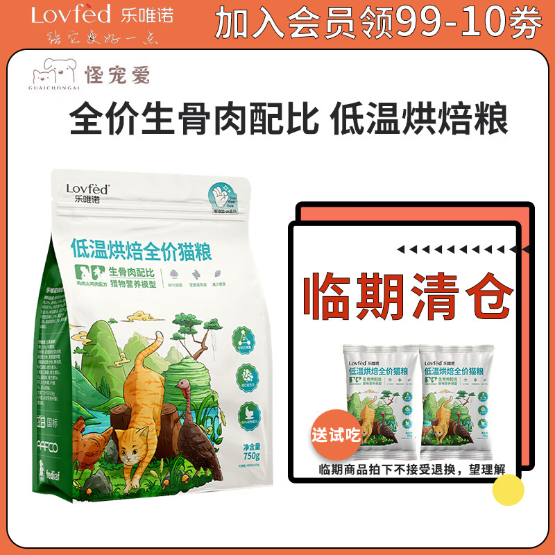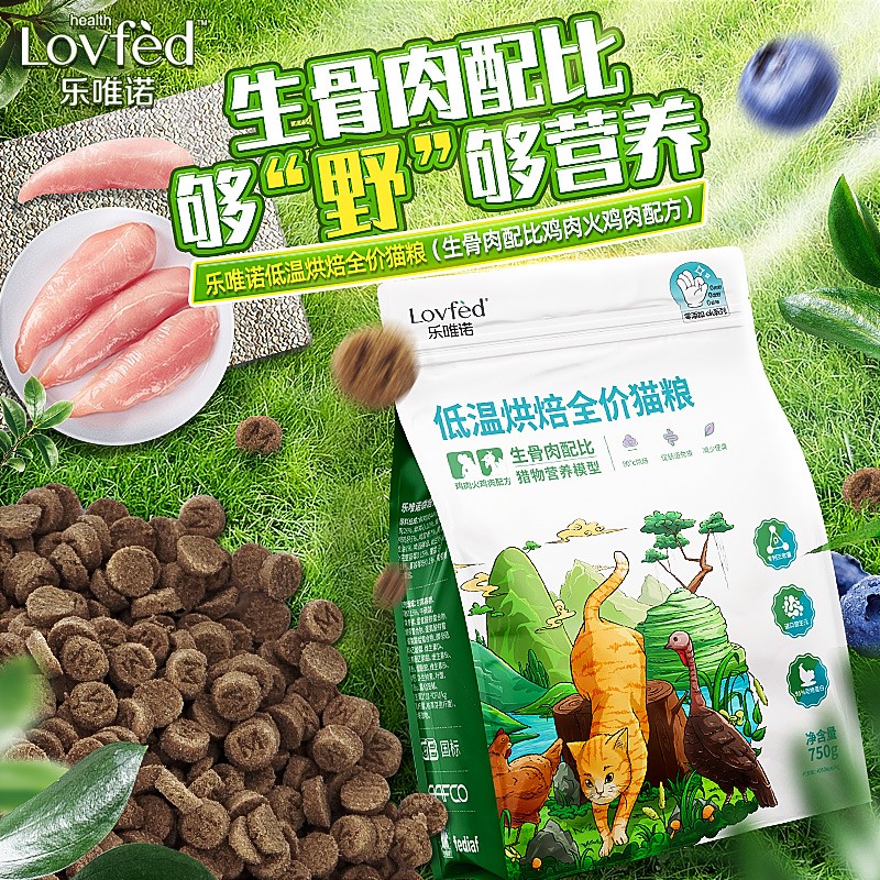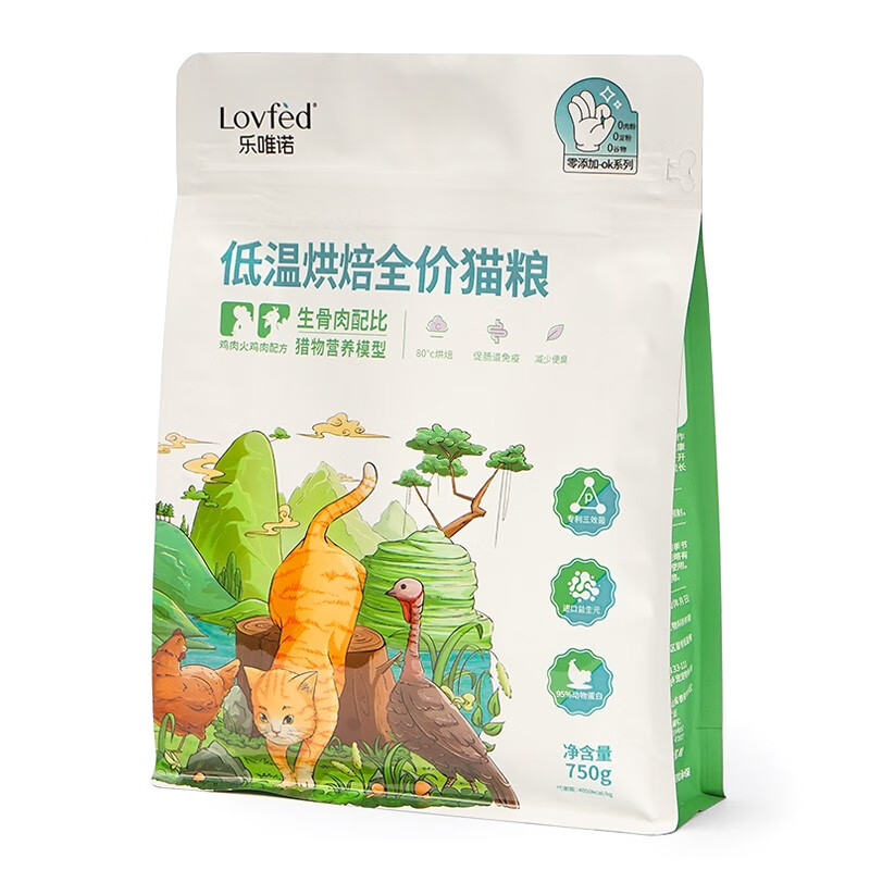 乐唯诺低温烘焙全价全期猫粮鸡肉兔肉成猫幼猫生骨肉配比布偶猫营养粮食 【到24.2.27】火鸡肉烘焙粮750g