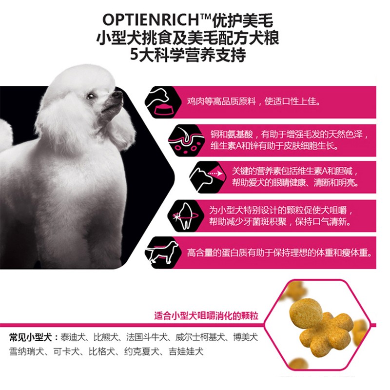 冠能(PRO PLAN)狗粮小型犬粮泰迪比熊约克夏雪纳瑞博美通用 小型犬挑食美毛成犬粮 7kg