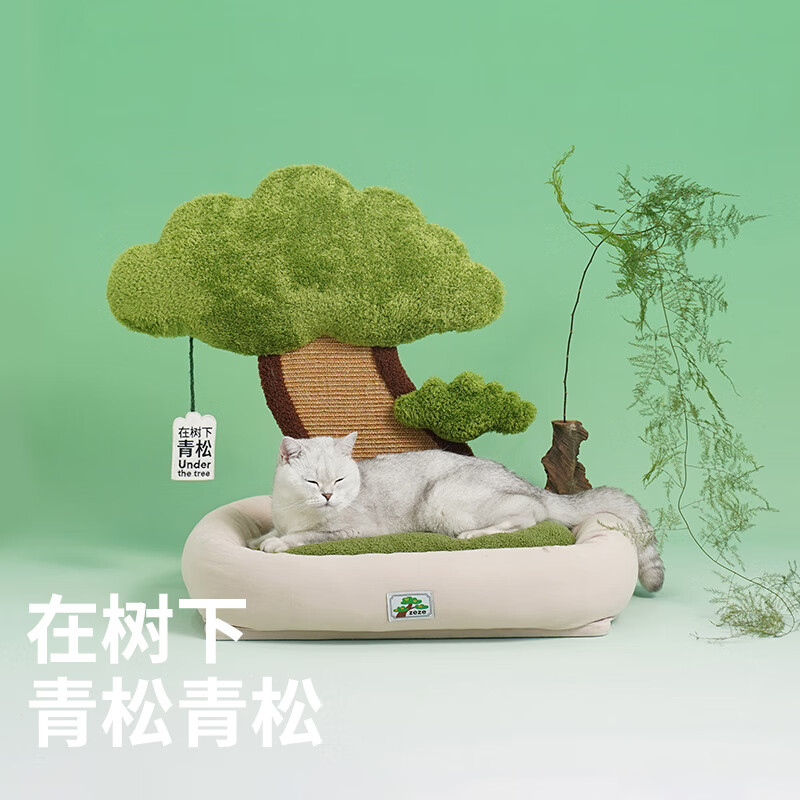 元気喵丨青松树猫窝睡猫抓板猫床四季通用可爱耐咬逗猫咪用品 树下青松宠物床 M-中型