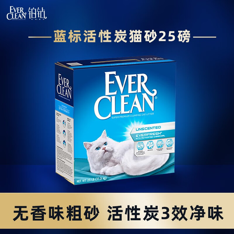 铂钻(EverClean)【美国原装进口】膨润土猫砂猫砂猫咪活性炭成猫幼猫混合矿砂 【蓝标】膨润土猫砂25磅
