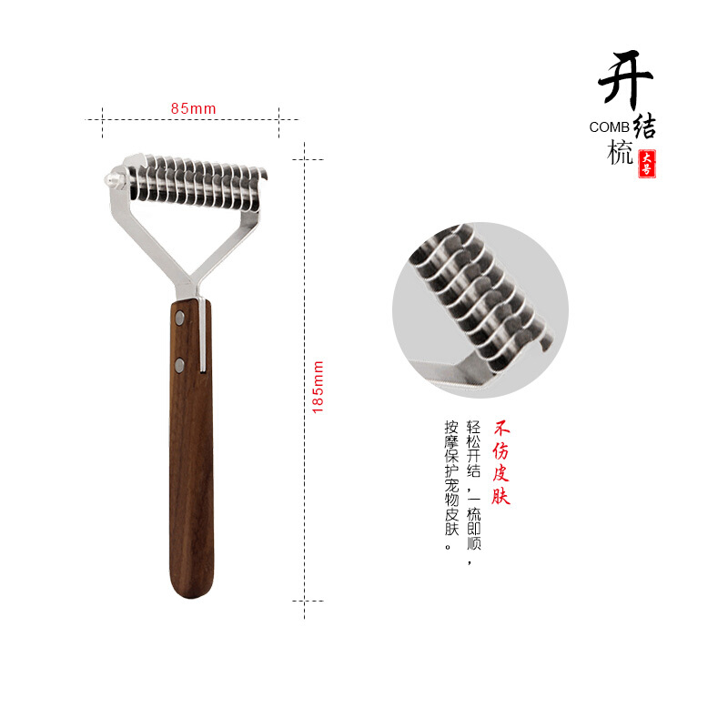 宠物梳子开结梳 Y型去浮毛狗毛梳拉布拉多泰迪金毛梳毛胡桃木猫狗通用曦凰 胡桃木大号(适用于中大型犬)