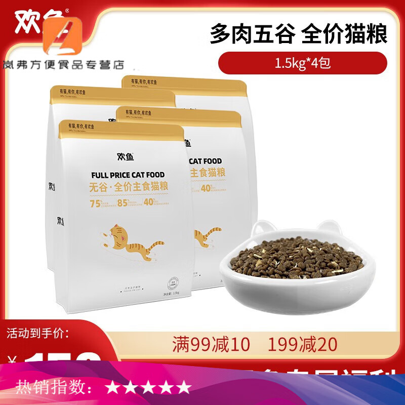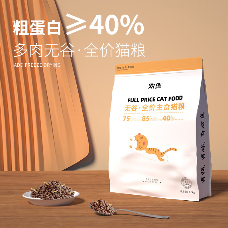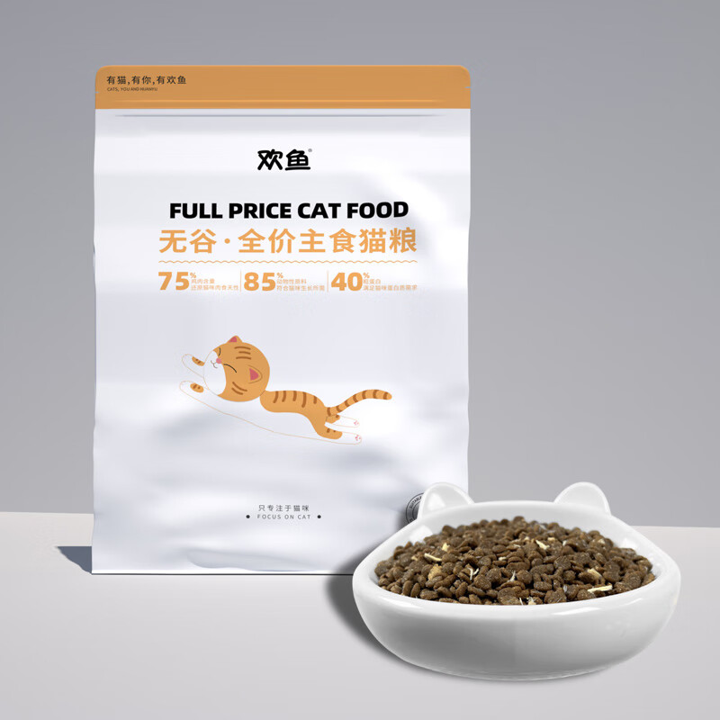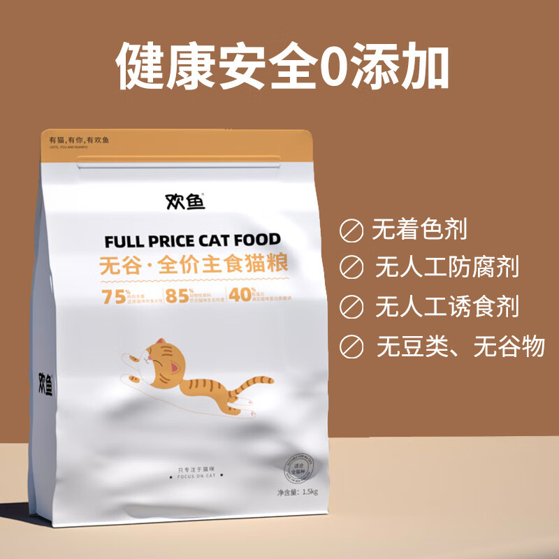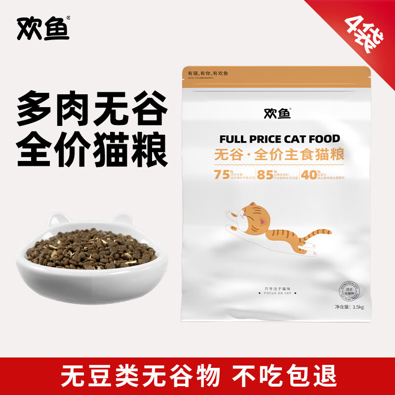 欢鱼猫粮1.5kg无谷鲜肉小颗粒猫粮营养增肥发腮成猫幼猫全价主食猫粮 无谷猫粮【1.5kg*4袋】