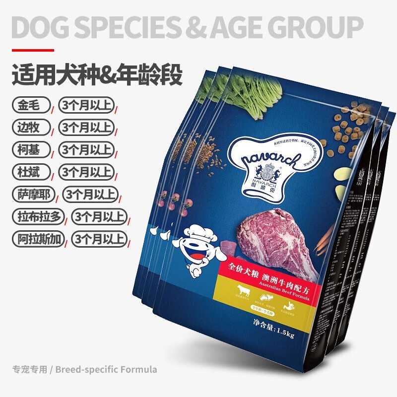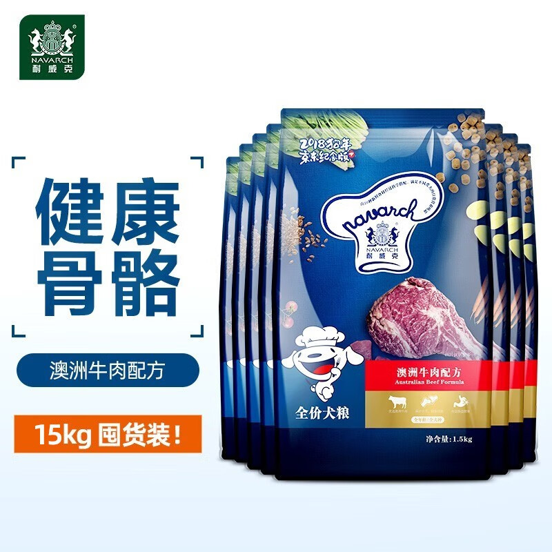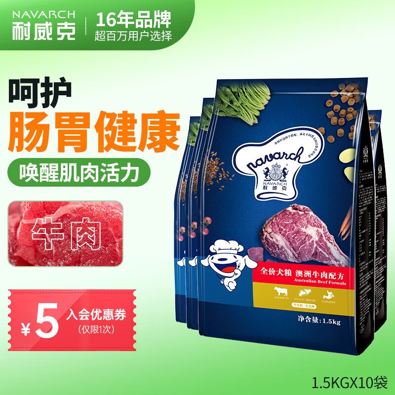 耐威克狗粮 鱼肉配方犬粮 成犬幼犬 泰迪柯基金毛萨摩耶拉布拉多 全犬种通用中大型小型犬 全价澳洲牛肉味15kg