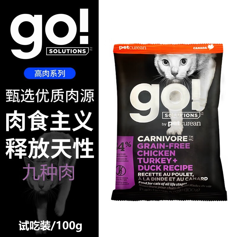 GO! SOLUTIONS九种肉进口通用猫干粮高蛋白无谷幼成猫增肥发腮猫粮 go九种肉猫粮试吃装100g
