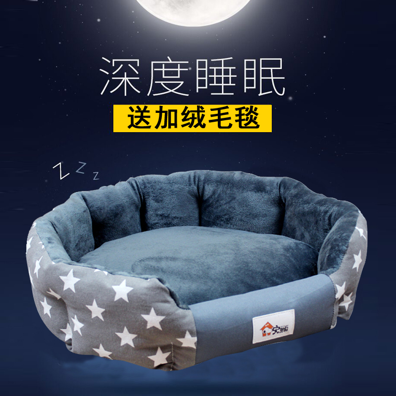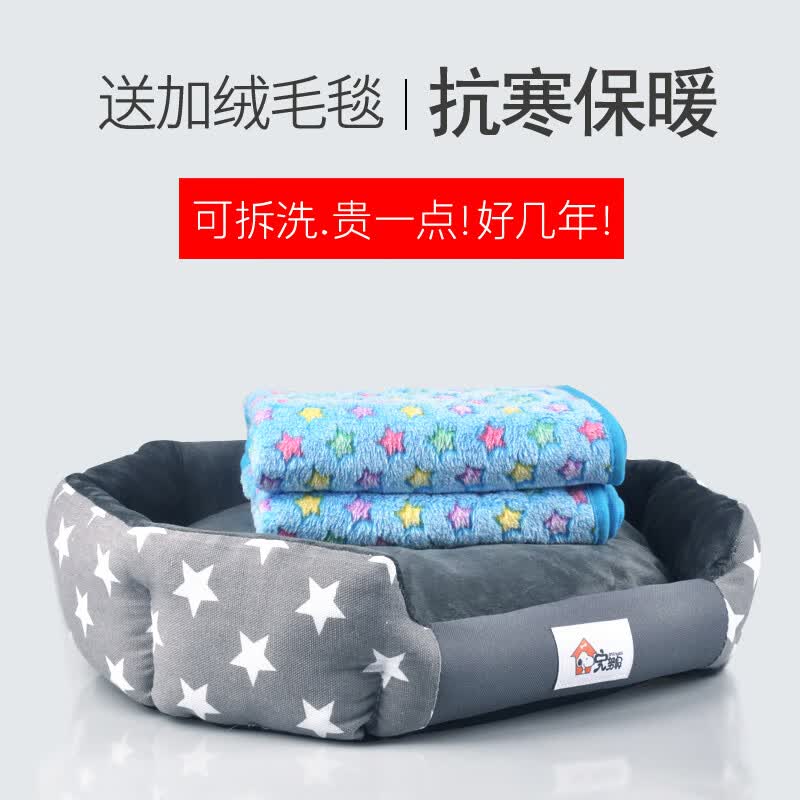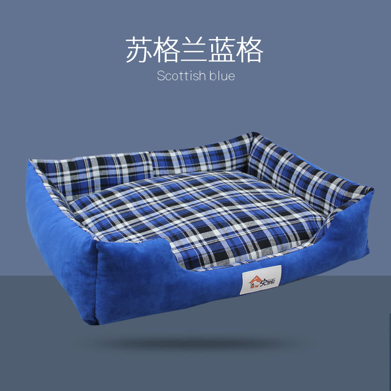 狗窝冬天保暖可拆洗垫子宠物四季通用猫窝大型小型犬泰迪狗狗用品 格子四方窝 蓝色 L-8~12斤(可拆洗垫)
