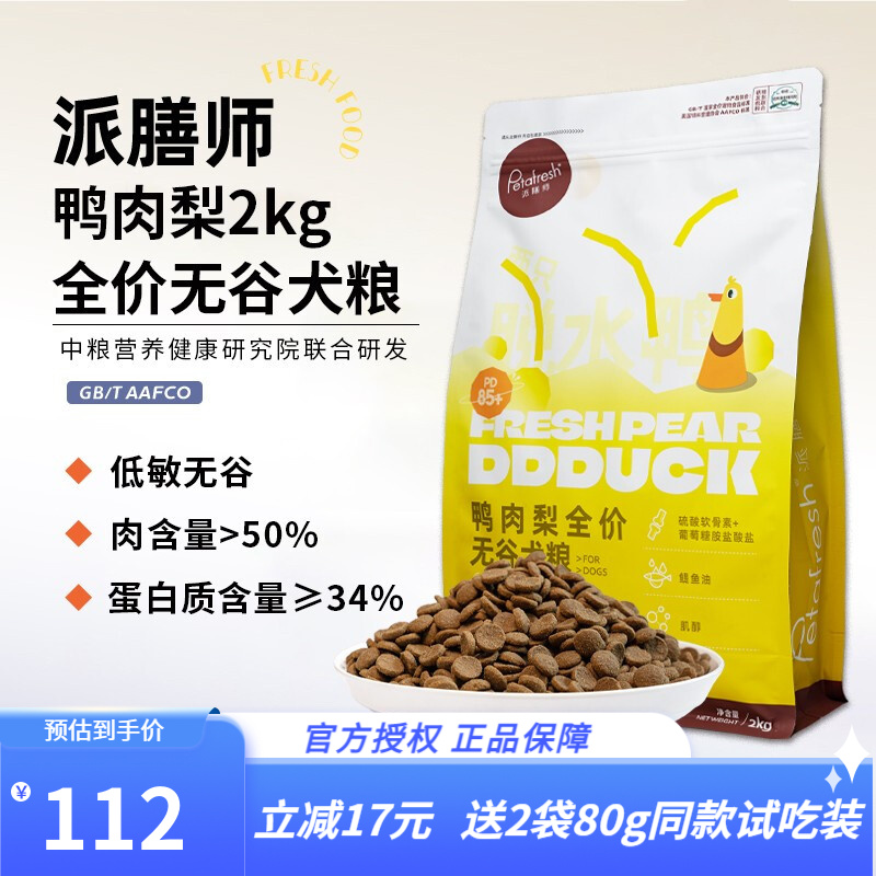 petafresh派膳师狗粮全价无谷幼犬成犬老年犬三文鱼鸭肉梨鸡肉泰迪柯基比熊金毛宠物犬粮高消化率 鸭肉梨 2kg(低敏配方)