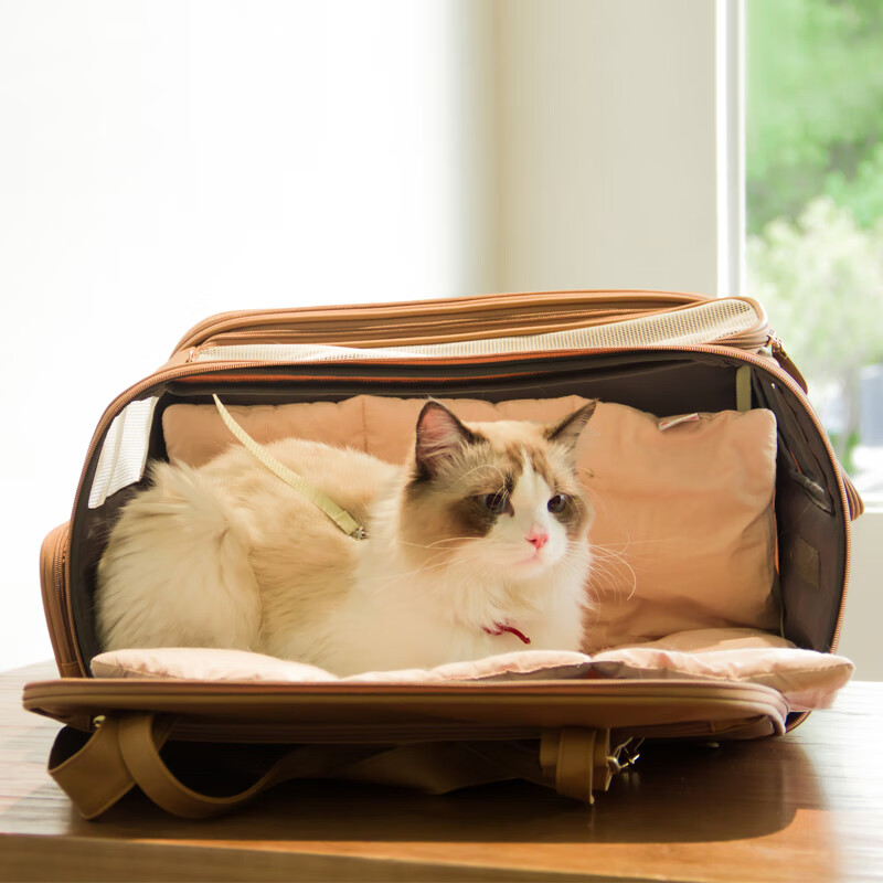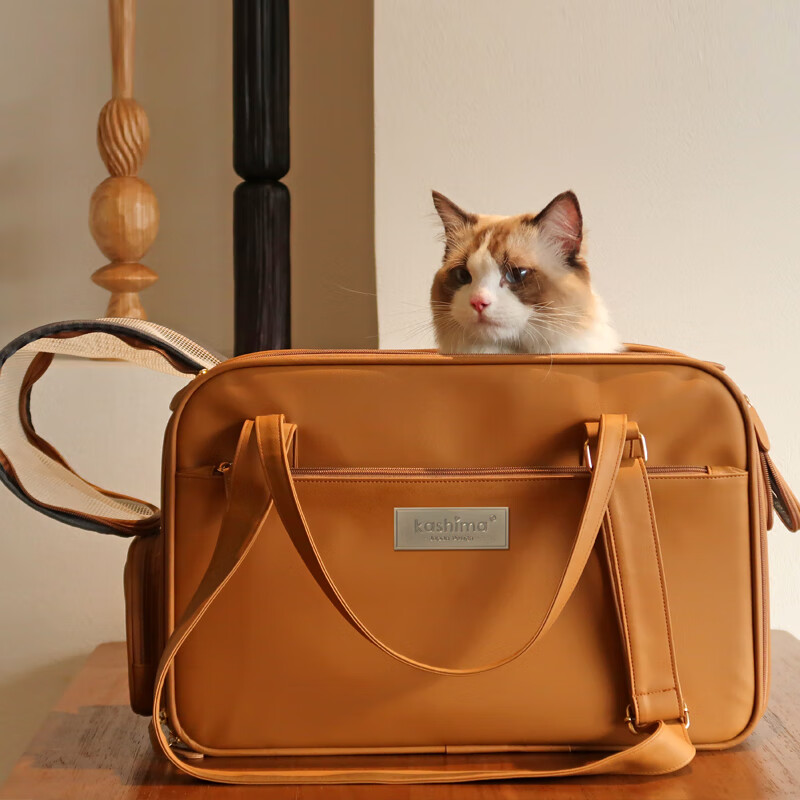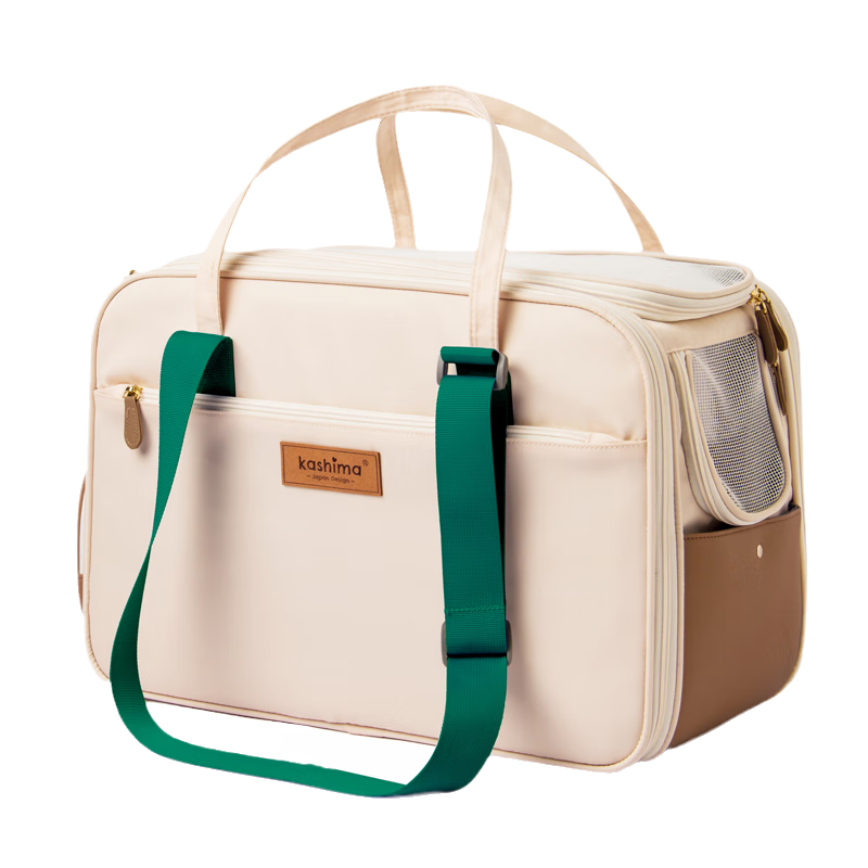 KASHIMA宠物外出便携包 斜跨小狗包航空箱狗笼猫咪车载笼外带包猫箱 原野绿(PU 尼龙)