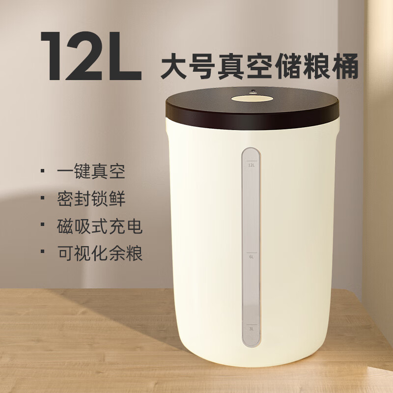 furrypaws 猫粮桶真空储粮桶智能宠物狗粮密封储存防潮装零食收纳自动盒子 真空储粮桶 升级款【12升 储存空间更大 更方便】