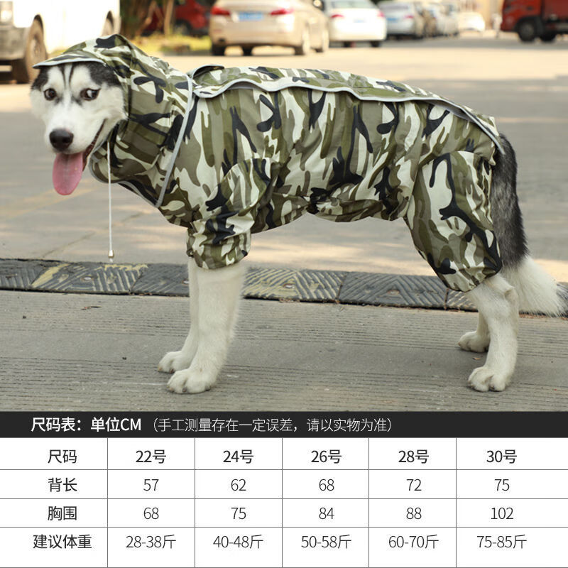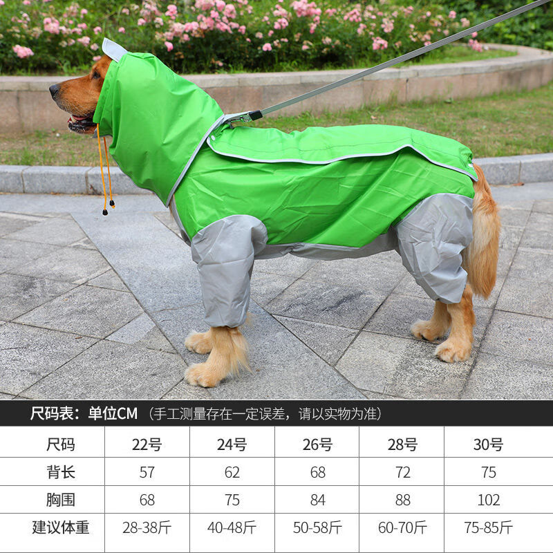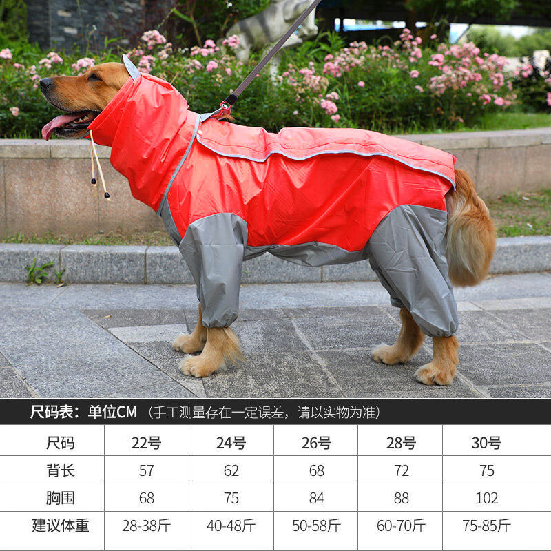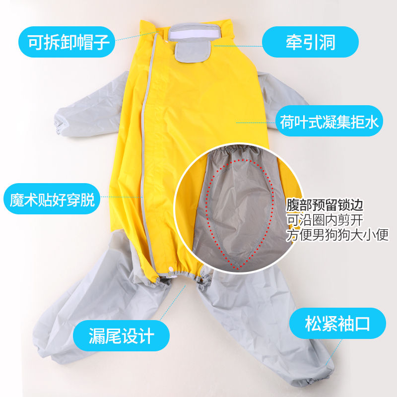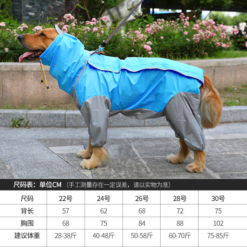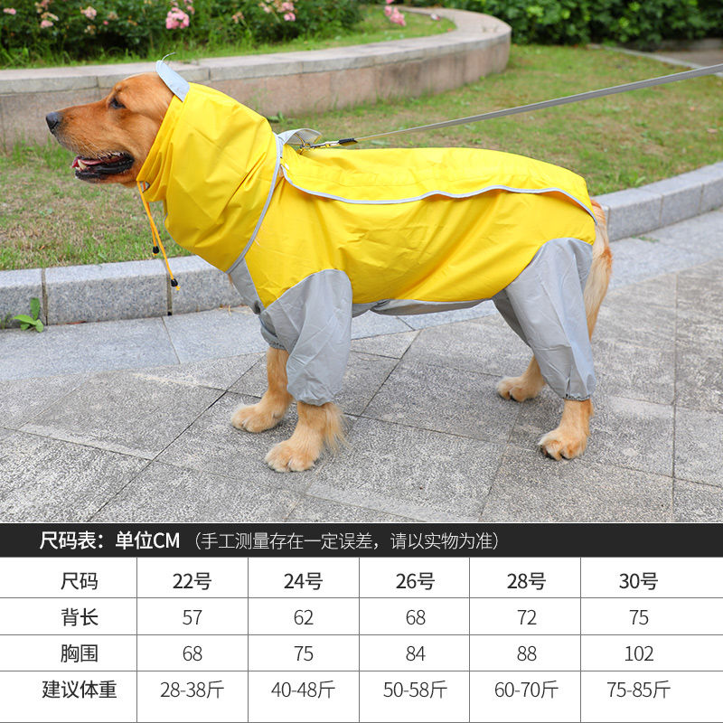 大狗雨衣四脚防水中大型犬金毛拉布拉多萨摩狗狗雨衣全包宠物衣服 灰黄色-全包-带帽子和牵引孔 22号(大约适合28-38斤穿)