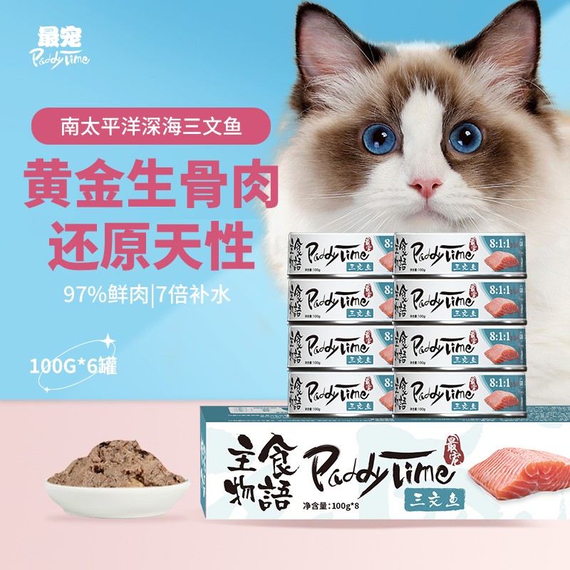 最宠(Paddy Time)主食猫罐头100g*8罐 8:1:1全价生骨肉无谷三文鱼配方主食湿粮成幼猫通用营养增肥英短渐层