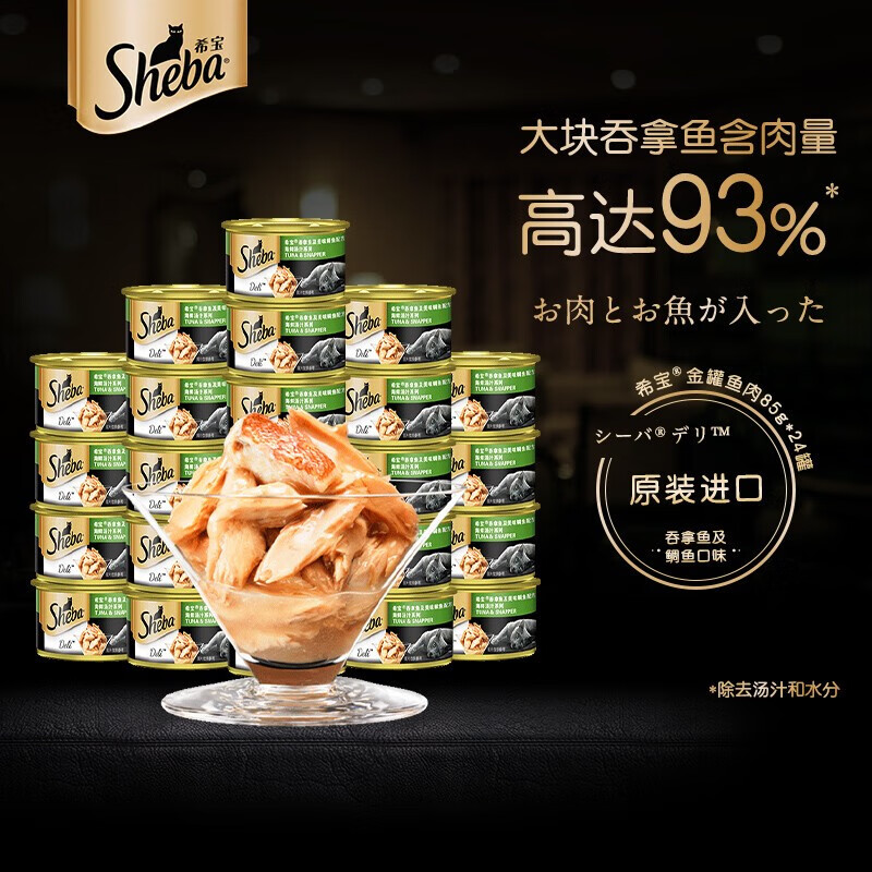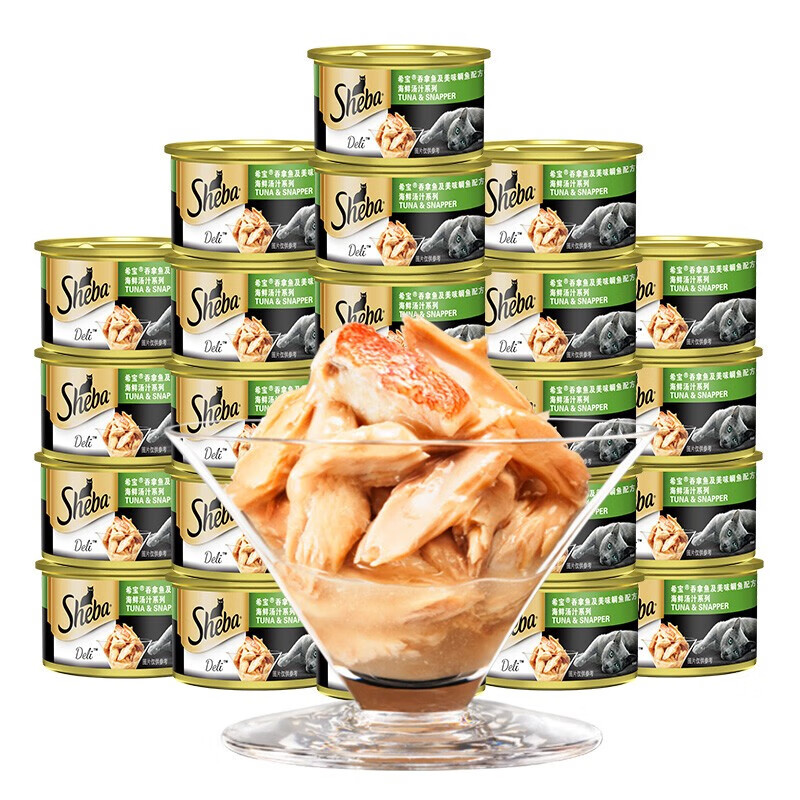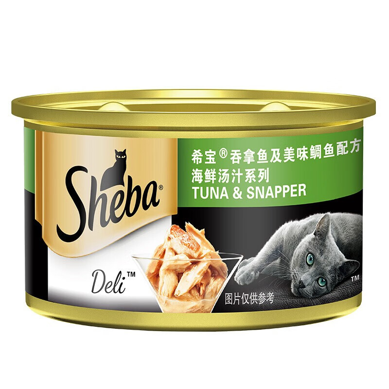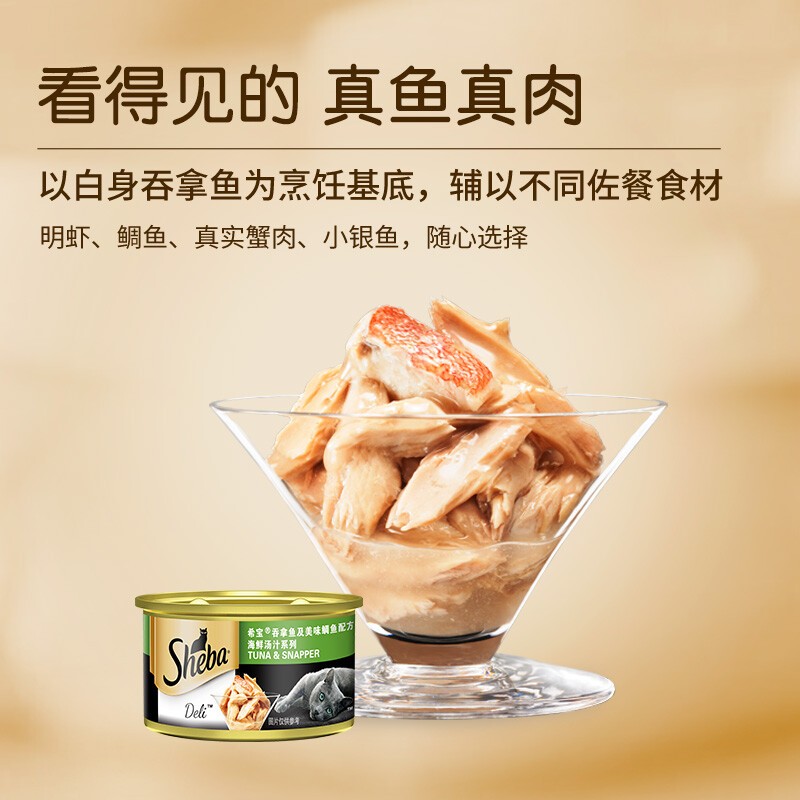 希宝(Sheba)猫罐头泰国进口金罐白肉猫咪零食营养增肥发腮成幼猫湿粮包拌粮 汤汁-吞拿鲷鱼85g*12罐