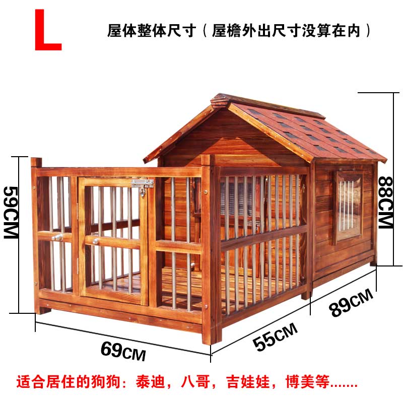 HKML狗屋户外防水实木狗窝中大型犬金毛狗窝防雨夏室外四季宠物别墅 L带院子 单窗带纱网(不包安装)