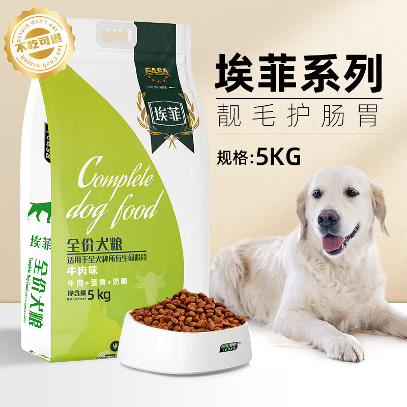 凛东伊萨 埃菲狗粮泰迪金毛萨摩耶拉布拉多全犬通用型成犬 边牧幼犬 埃菲全期粮5kg