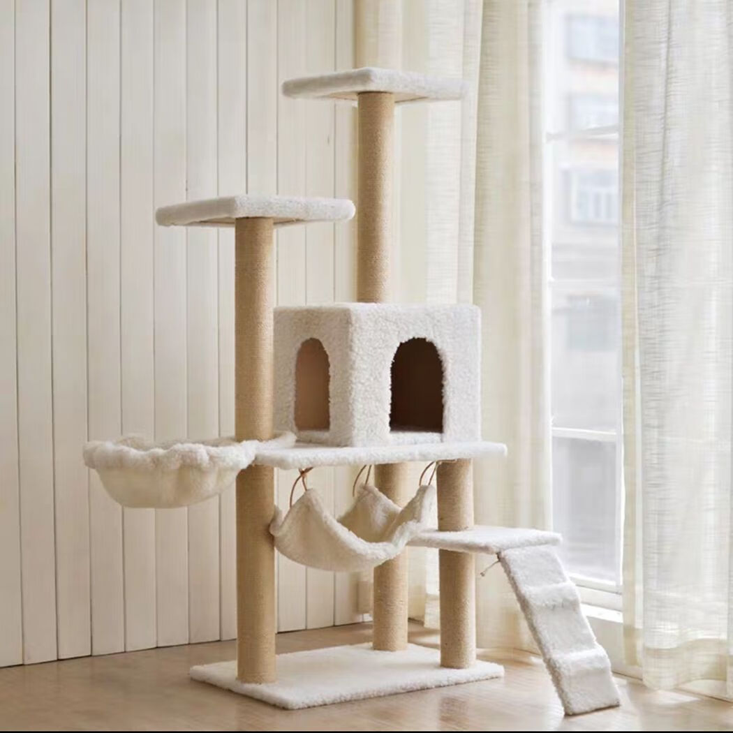 【工厂直发】猫爬架猫窝猫树猫玩具猫跳台剑麻柱猫抓柱猫别墅猫咪用品地狼 奢华羊羔绒款-米白(升级加勺子)