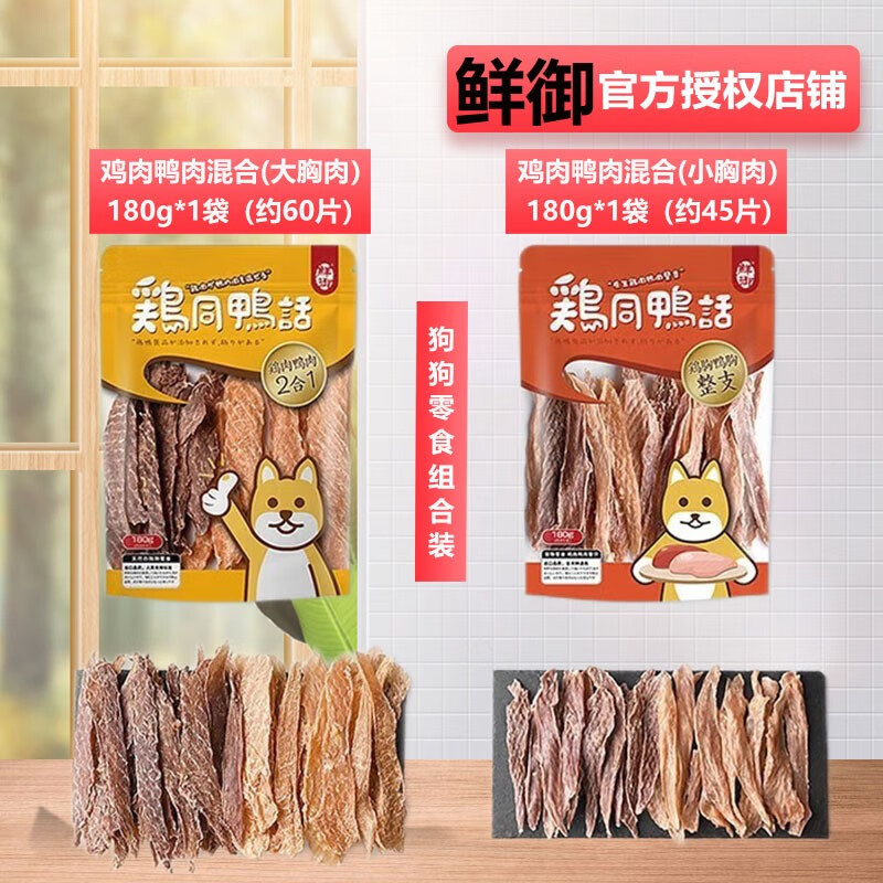 鲜御鸡胸肉干鸭肉干狗狗磨牙洁齿训练奖励零食 金毛泰迪成幼犬通用 大胸肉180g*1包 小胸肉180g*1包